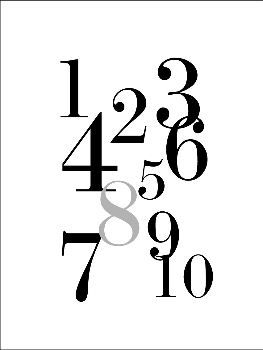 Plakat mit den Zahlen 1-10 in Schwarz und Grau. Mit seinem grafischen Ausdruck passt das Motiv sowohl allein in seiner Majestät im Kinderzimmer als auch im restlichen Zuhause und passt zu allen Einrichtungsstilen. Das poster kann auch mit dem Plakat A-Ö oder anderen Bildern kombiniert werden, zum Beispiel zum Thema Naturwissenschaften, um eine spannende Bilderwand zu erstellen.