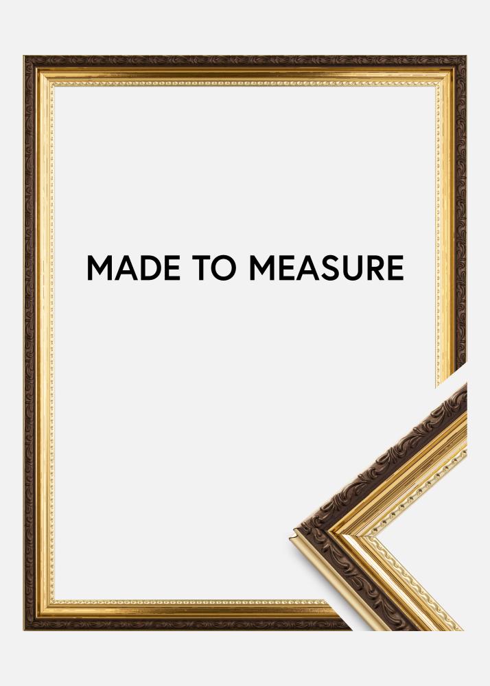 Abisko ist ein eleganter goldfarbener Fotorahmen im Retro-Stil mit feinen Verzierungen. Der Bilderrahmen ist golden mit roten Elementen und hat einen schönen verzierten Rand in einer warmen braunen Farbe. Perfekt, wenn du auf der Suche nach einem alt aussehenden Goldrahmen bist.