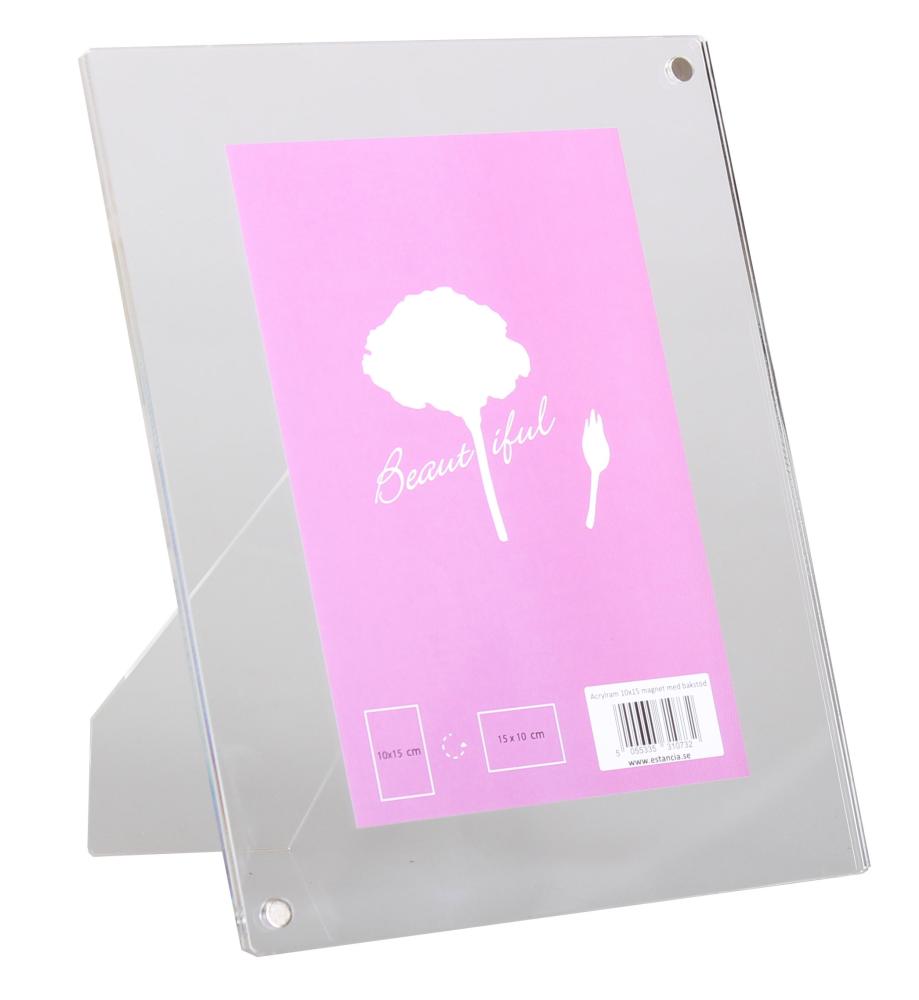 Acrylrahmen bestehend aus 2 dicken dicken Acrylplatten, die durch Magnete zusammengehalten werden. Mit den Außenmaßen 15x20 cm bietet der Rahmen Platz für alle Bilder mit den Maßen 15x20 cm oder weniger. Die Maße des Einsatzblatts auf dem Bild betragen 10x15 cm.