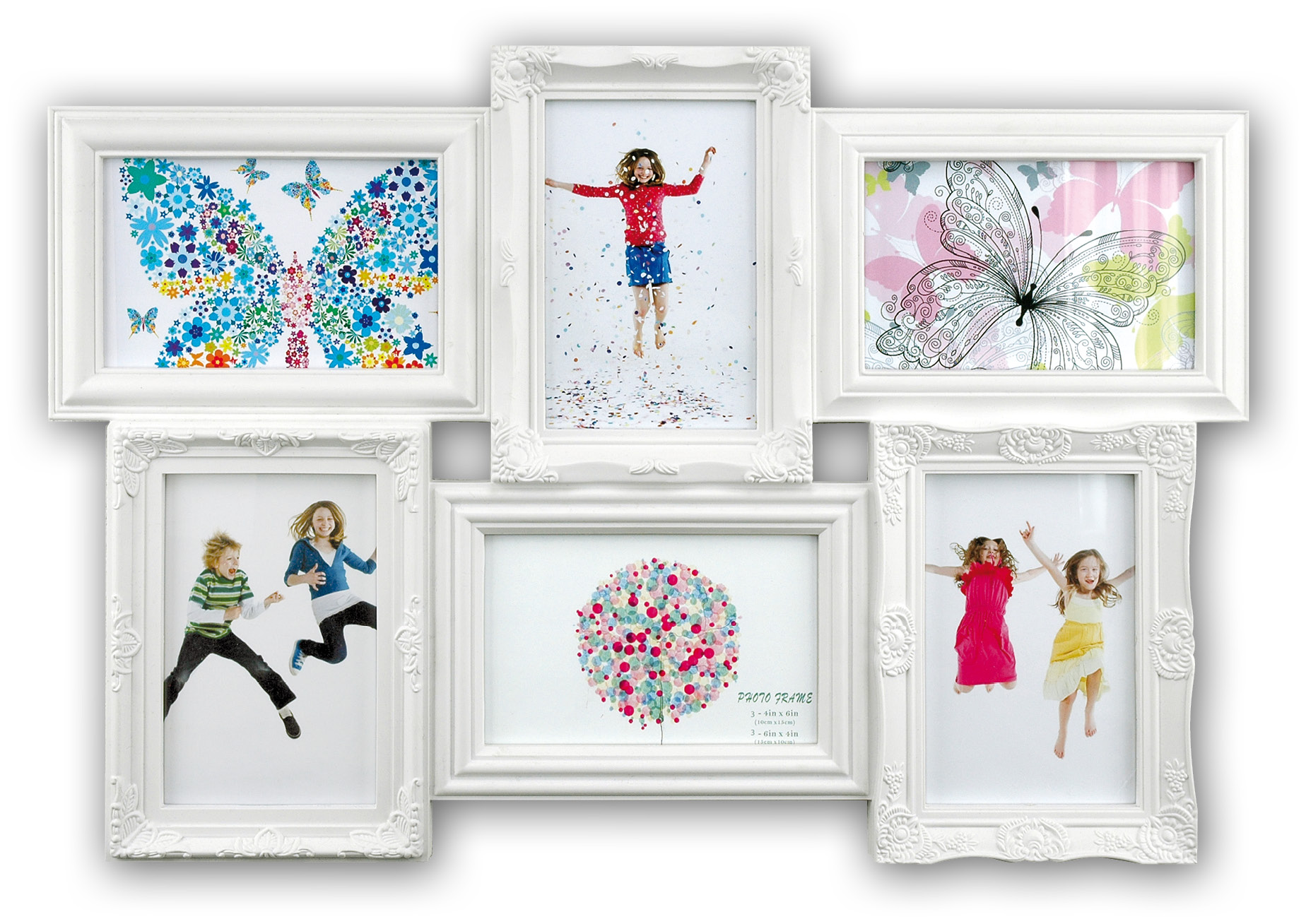 Art.-Nr.:Wunderschön verzierter weißer Collage-Rahmen mit breitem Profil im klassischen Stil. Ideal für Bilder, die dir besonders am Herzen liegen.
