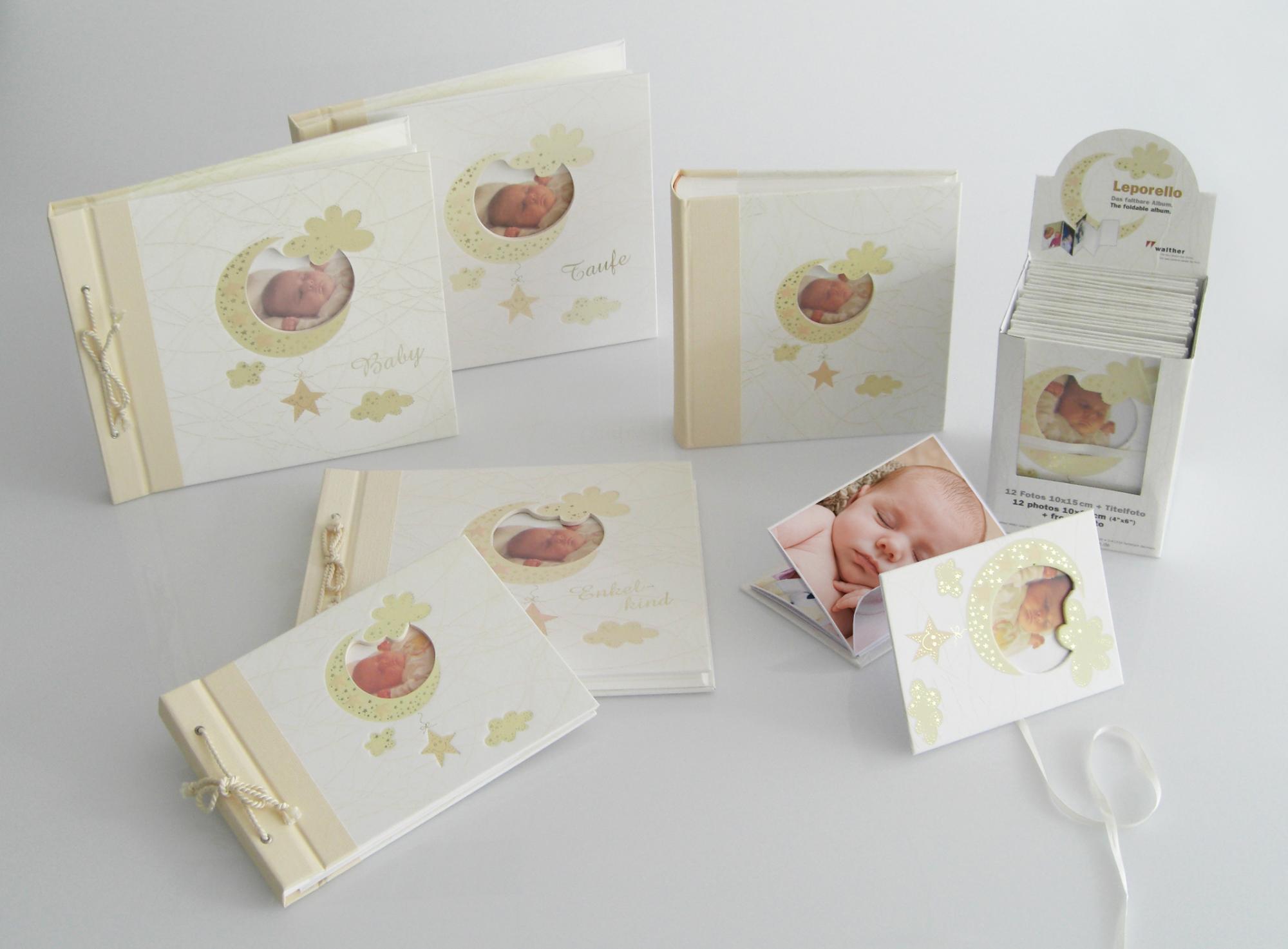 Schönes Babyalbum in angenehmen Farben, die perfekt zu deinen schönsten Bildern im Format 10x15 cm passen. Auf der Vorderseite des Albums ist Platz für ein persönliches Bild.