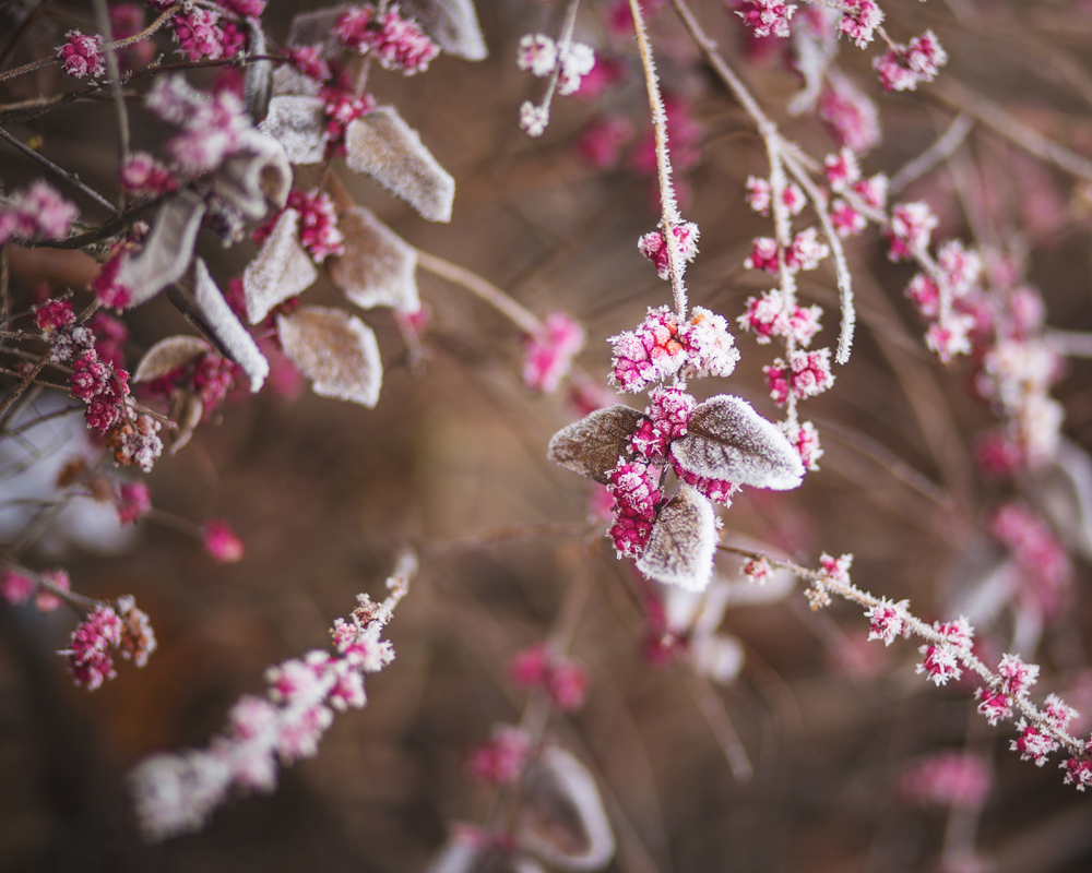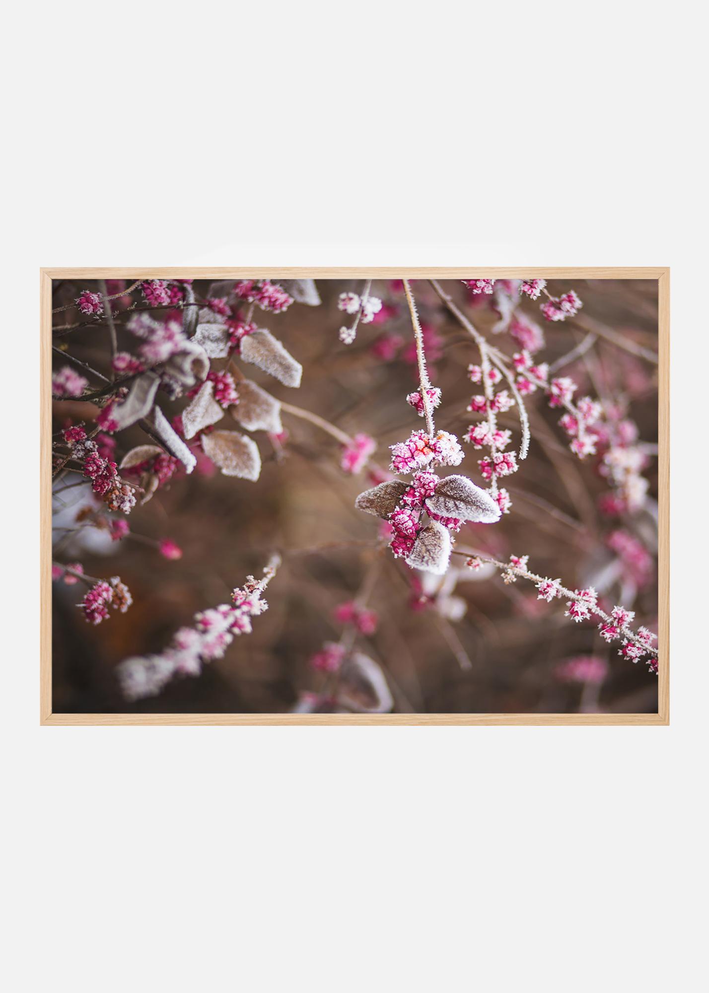 Fotokunst mit Nahaufnahme von frostigen, tauigen Beeren mit geringer Schärfentiefe. Der Druck vermittelt mit den Beeren in Rosa und dem Hintergrund in Schokoladentönen ein warmes und gemütliches Gefühl. In einer größeren Größe mit einem schicken Rahmen wird das Bild zum Blickfang im Wohnzimmer oder setzen Sie eine kleinere Variante im Bildercollage zusammen mit anderen Postern in denselben Farbtönen.