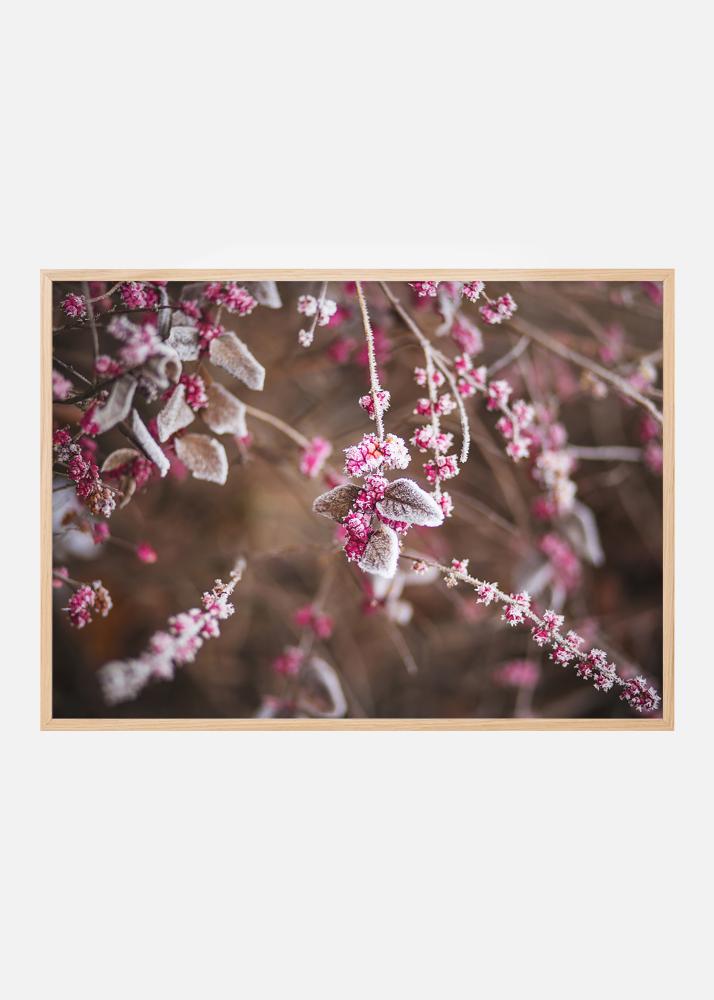 Fotokunst mit Nahaufnahme von frostigen, rosafarbenen Beeren mit geringer Schärfentiefe. Das Print vermittelt mit den Beeren in Rosa und dem Hintergrund in Schokoladentönen ein warmes und gemütliches Gefühl. In einer größeren Größe mit einem schicken Rahmen wird das Bild zum Blickfang im Wohnzimmer oder setzen Sie eine kleinere Variante im Bildercollage zusammen mit anderen Postern in denselben Farbnuancen.