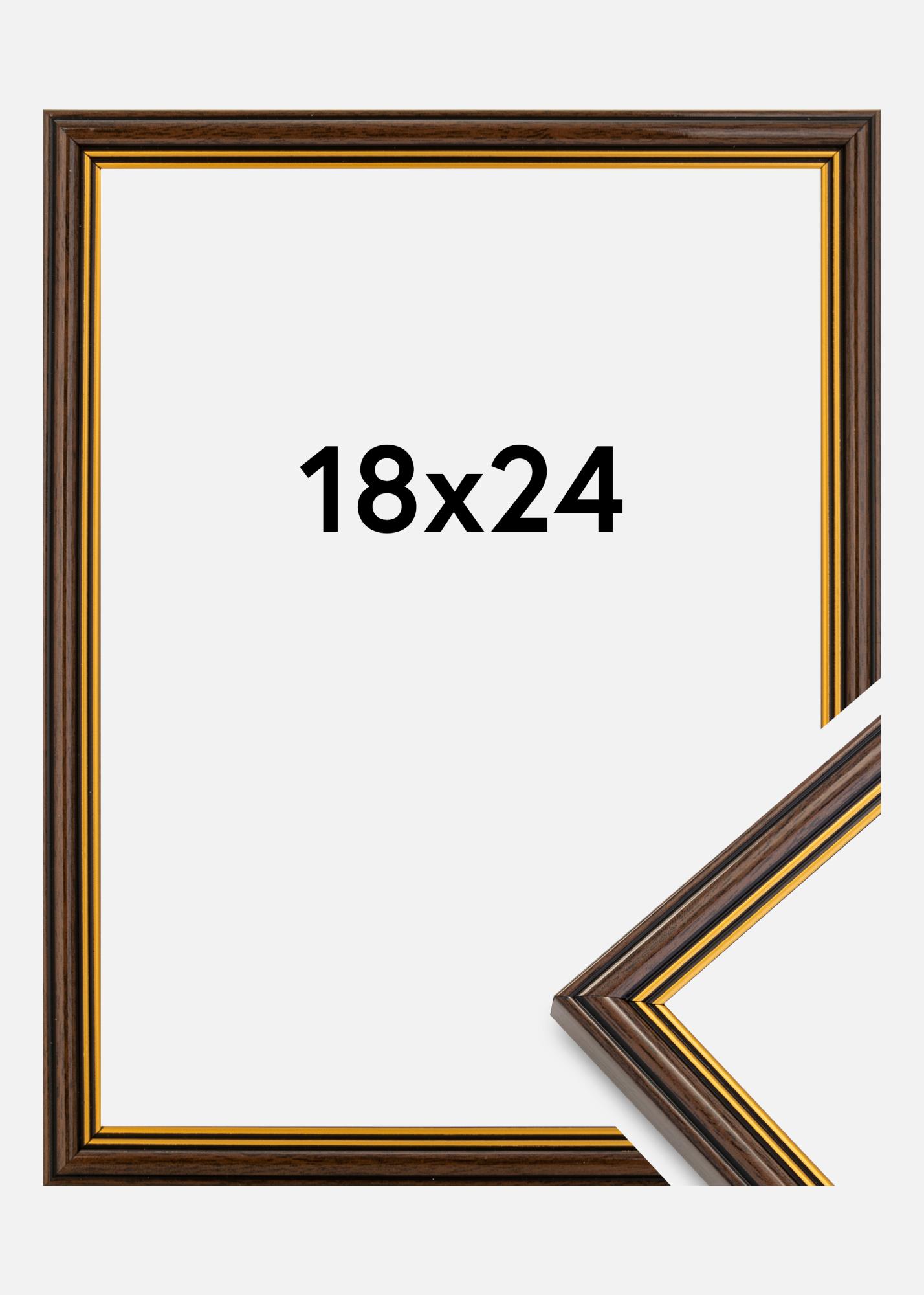 Wenn du nach einem klassischen Bilderrahmen in dunkler Holzfarbe suchst, ist "Classic Walnuss" eine ausgezeichnete Wahl. Der Bilderrahmen hat eine dunkle Walnussfarbe und zwei dünne goldfarbene Linien direkt neben dem Bild.