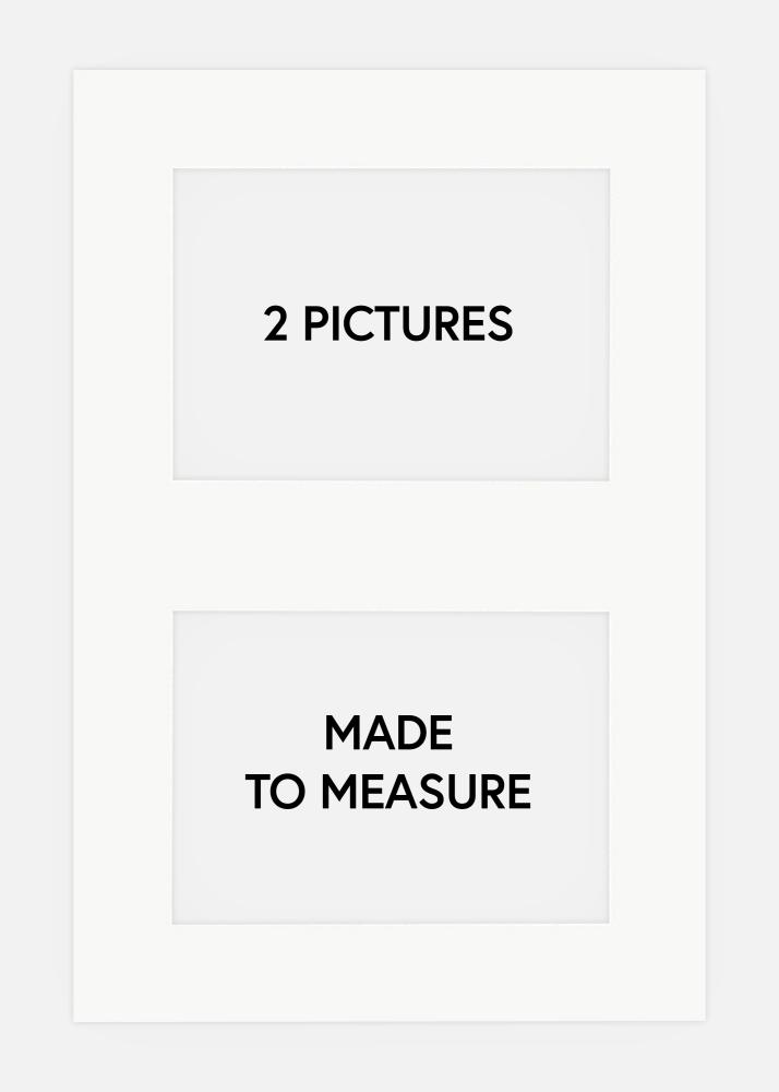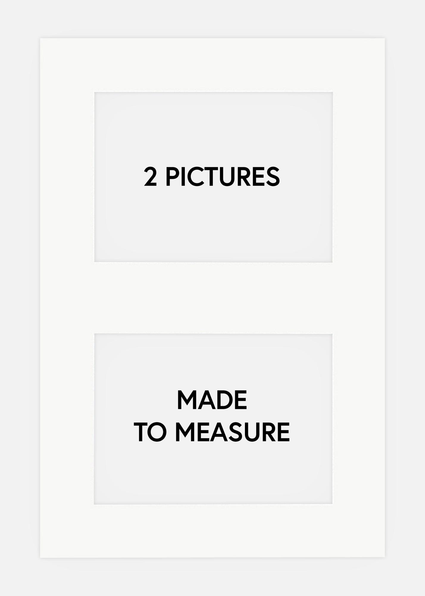 Hier kannst du glatte Collage-Passepartouts mit Platz für 2 Bilder bestellen. Gib bei der Bestellung die Außenmaße des Passepartouts (die den Abmessungen des Rahmens entsprechen sollten, den du verwenden möchtest) und auch die gewünschten Innenmaße an, die immer 1 cm kleiner sein sollten als die Bilder, die du verwenden möchtest. Hier kannst du nur bestellen, wenn du zwei Bilder mit derselben Größe hast. Wenn du auf der Suche nach Collage-Passepartouts für mehrere Bilder in verschiedenen Größen bist, wende dich bitte an unseren Kundenservice.