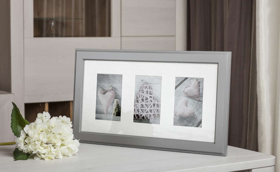 Collage-Rahmen Malmö Grau AB - 3 Bilder (10x15 cm) bietet Platz für 3 Bilder mit klassischen Maßen.