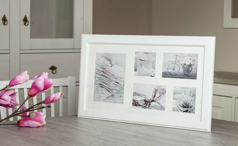 Collage-Rahmen Malmö Weiß - 5 Bilder bietet Platz für 5 Bilder in unterschiedlichen Größen.