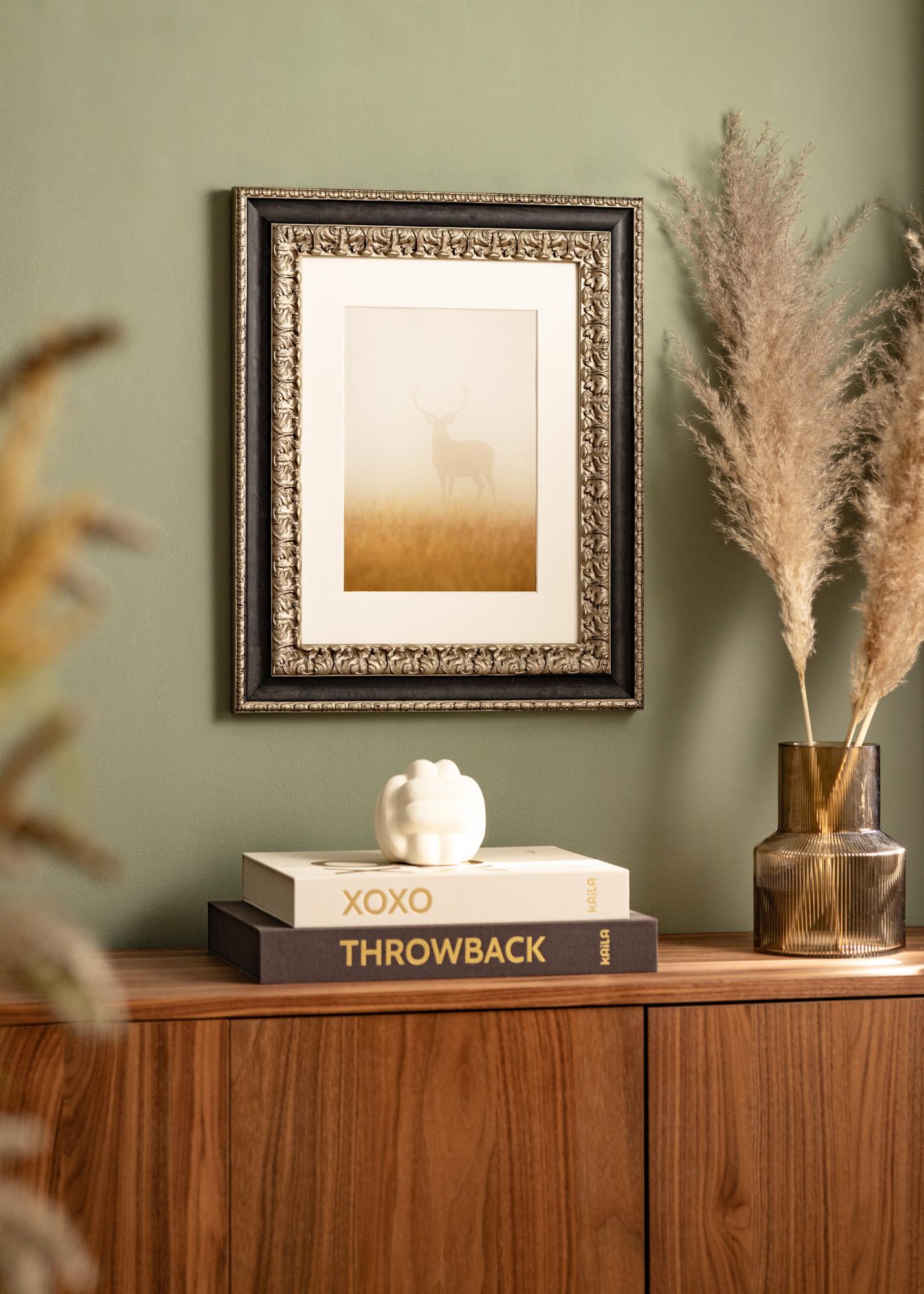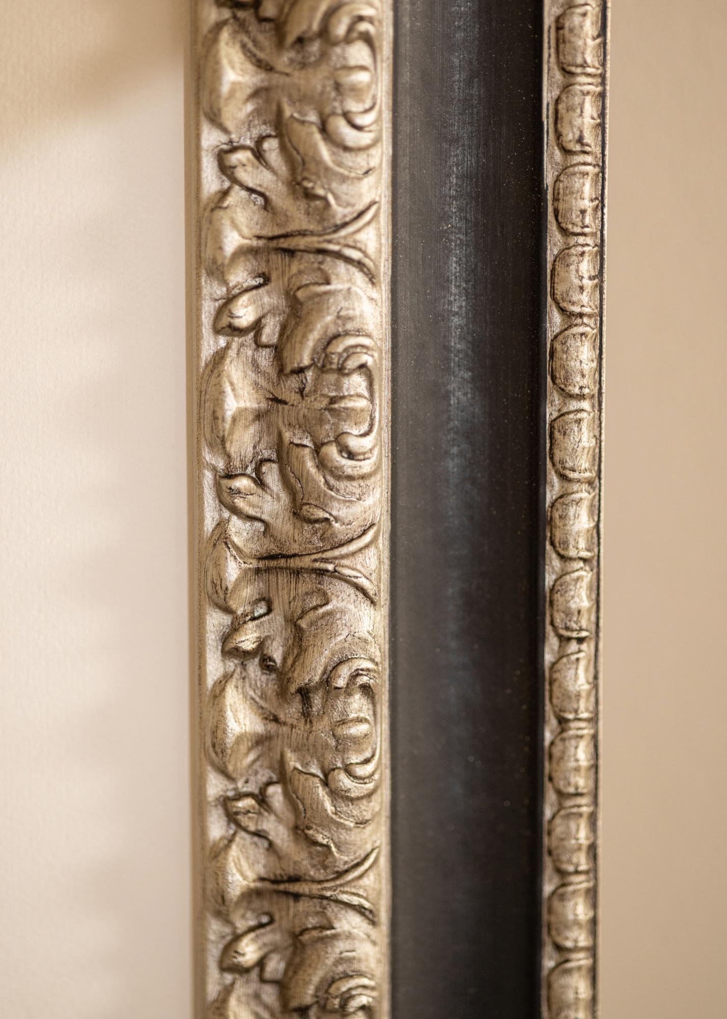 "Drottningholm Silber" ist ein wunderschöner, handbemalter Retro-Rahmen aus Italien, hergestellt aus Kiefernholz und mit Fingerzinkung. Der Bilderrahmen hat ein reich verziertes Silberprofil mit einem breiten schwarzen Rand, wodurch ein eleganter Eindruck entsteht. Perfekt für alle Arten von Motiven und Einrichtungsstilen im Retro-Stil.