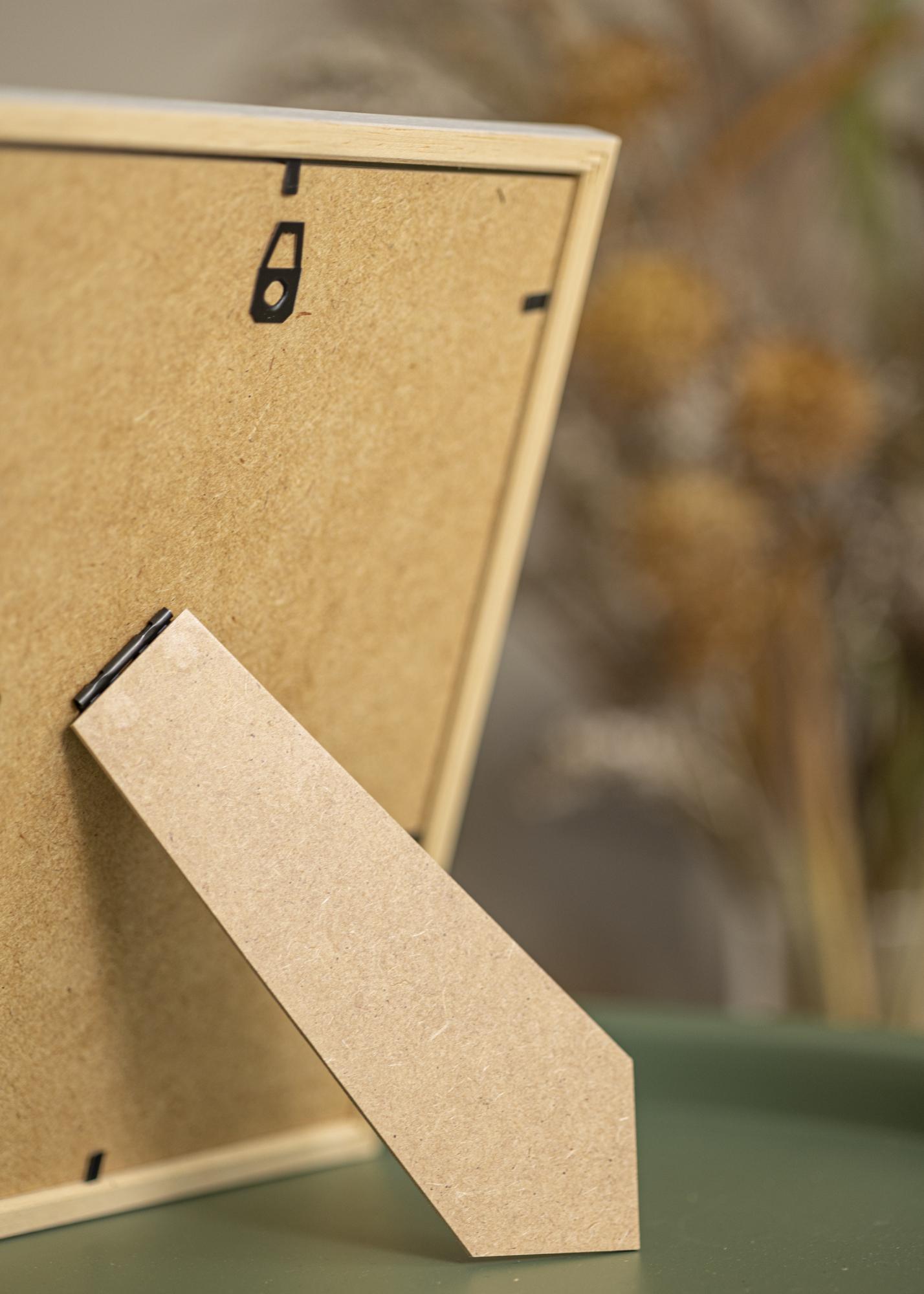 Die Rückwand des Bilderrahmens ist aus MDF gefertigt und wird von kleinen Metallstiften gehalten, die einfach nach oben gebogen werden können, wenn ein Bild eingelegt werden soll. Die Rückwand ist zudem mit Ösen zur Aufhängung versehen, sodass der Bilderrahmen entweder hochkant oder im Querformat aufgehängt werden kann.