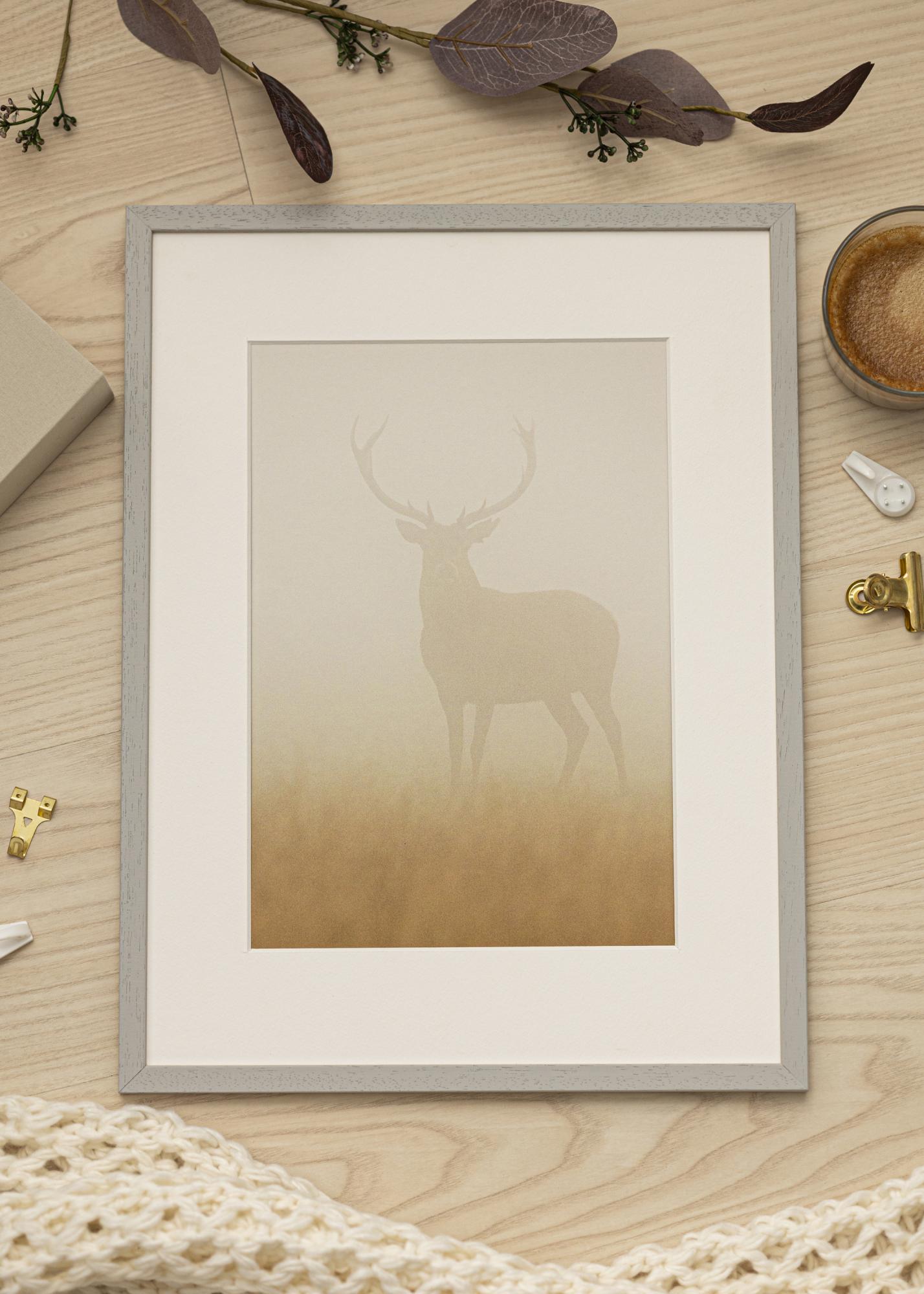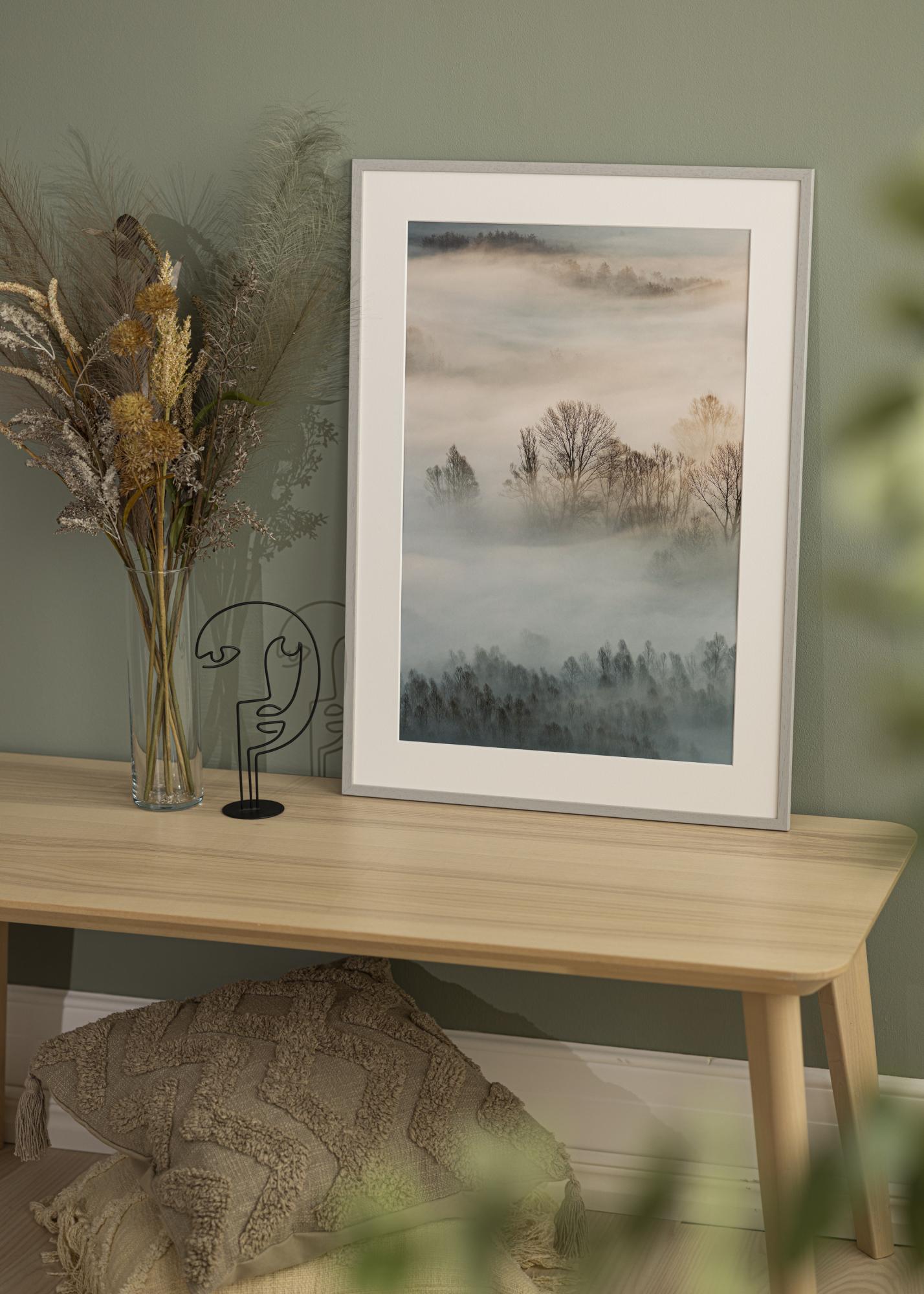 Edsbyn Grey ist ein hochwertiger Bilderrahmen in schwedischem Design. Die Rahmenleisten sind aus echtem Abachiholz gefertigt und mit einer stilsicheren, grauen Farbnuance versehen. Das viereckige Profil in Kombination mit dem eleganten Grauton verleiht dem Bilderrahmen aus Holz einen sehr geschmackvollen, schicken und auch modernen Ausdruck, der zu vielen Wohnstilen passt und sich wunderbar in verschiedene Wohneinrichtungen einfügt. Der Bilderrahmen ist mit Floatglas ausgestattet, das sich durch eine sehr glatte Oberfläche und einen UV-Schutz von 40-45% auszeichnet. Die Rahmenleisten sind 13 mm breit und 11,5 mm tief. Die harmonischen Maße verleihen dem Rahmen einen wohlbalancierten und zugleich stabilen Charakter. Die Falztiefe (Innentiefe) des Holzrahmens beträgt 8 mm, wodurch ausreichend Platz für ein Passepartout bleibt, falls das Bildmotiv noch eindrucksvoller in Szene gesetzt werden soll. Der abgebildete Bilderrahmen eignet sich für die Bildgröße A3 (29,7x42 cm).
