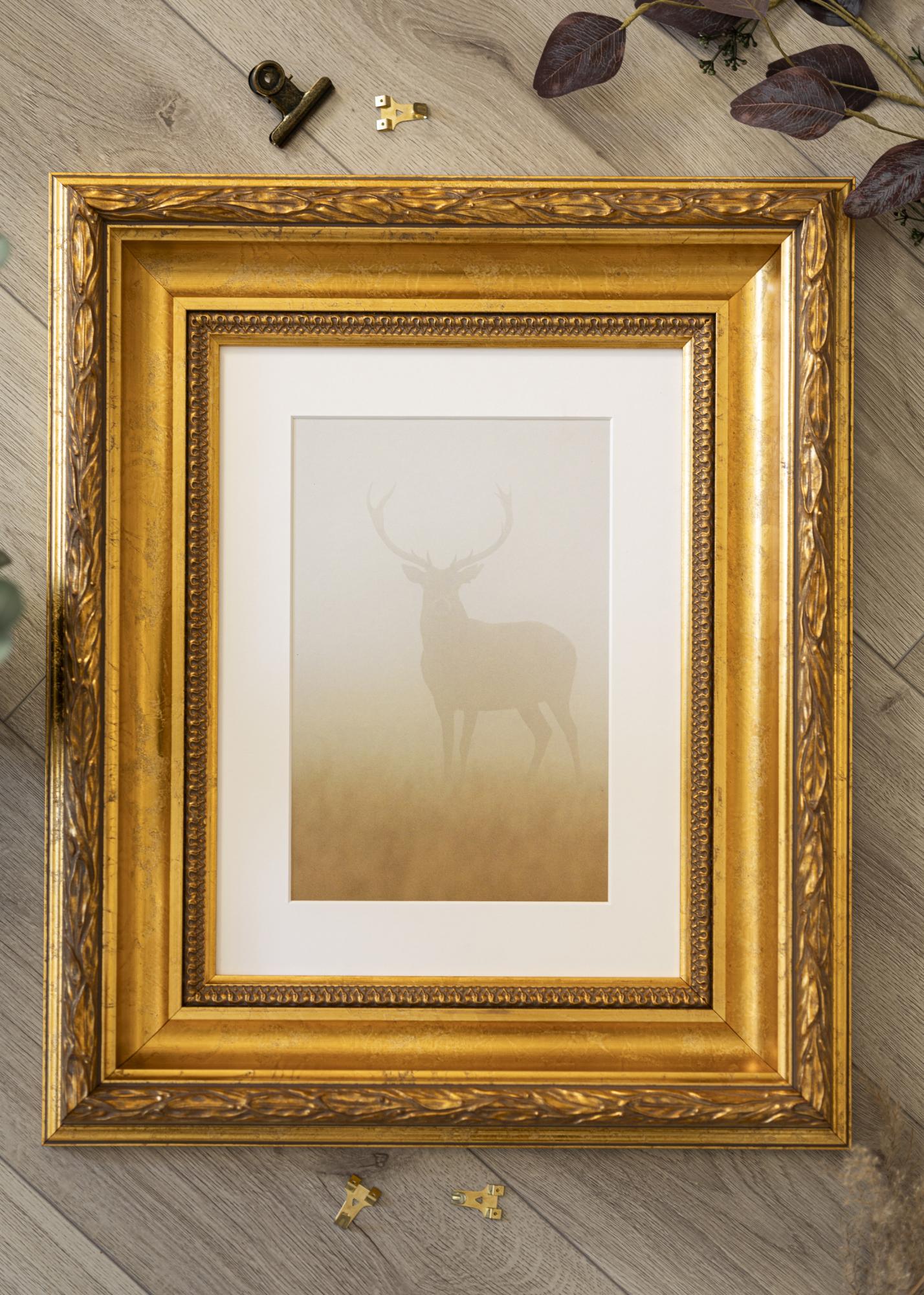 Der Rahmen Egypt Ornament Gold ist aus Holz gefertigt, was ihm eine natürliche und nachhaltige Haptik verleiht. Die elegante Patina hebt die Verzierungen hervor und macht diesen Fotorahmen zu einer ausgezeichneten Wahl für sowohl moderne als auch traditionelle Inneneinrichtungen. Egal ob Sie ihn im Wohnzimmer, Schlafzimmer oder Büro platzieren, wird dieser Rahmen die Blicke auf sich ziehen und Ihre Bilder bestens zur Geltung bringen.