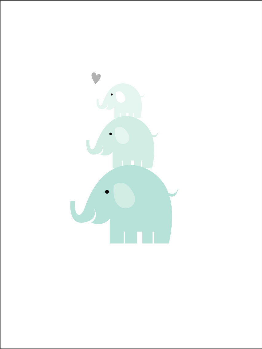 Poster mit gedrucktem Motiv mit einem Trio von süßen Elefanten in einem eisblauen Farbton, gestapelt übereinander auf weißem Papier. Etwas für denjenigen, der alle Tiere der Savanne mag, passt aber vielleicht am besten in jedes jüngere Kinderzimmer. Das Poster kann mit anderen Tier- oder Elefantenpostern in derselben Farbgebung kombiniert werden, um ein wunderbares Märchengefühl im Kinderzimmer zu schaffen.