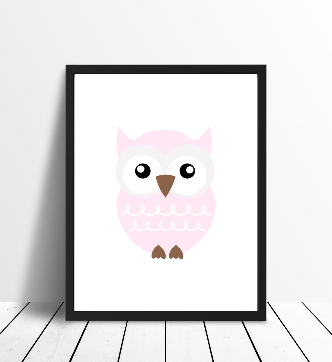 Süßes Poster mit dem beliebtesten Haustier, der Eule. Die Illustration einer stilisierten rosaroten Eule auf weißem Hintergrund ist zu einem modernen Klassiker geworden. Das Motiv passt sowohl ins Wohnzimmer als auch ins Kinderzimmer und kommt besonders gut zur Geltung, wenn die Einrichtung die Farbe des Bildes aufnimmt. Kombinieren Sie es mit anderen Vögeln oder Tieren für ein wildes Gefühl.