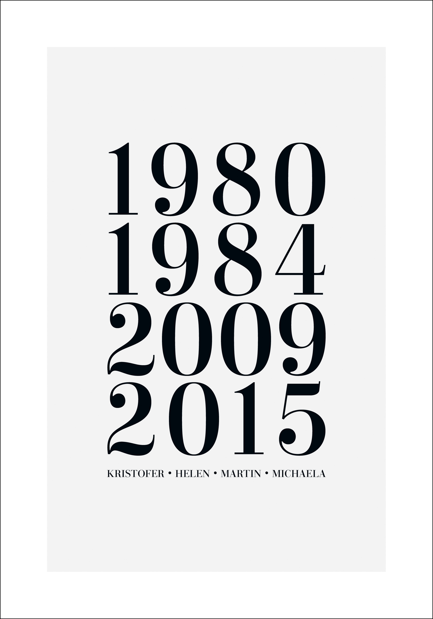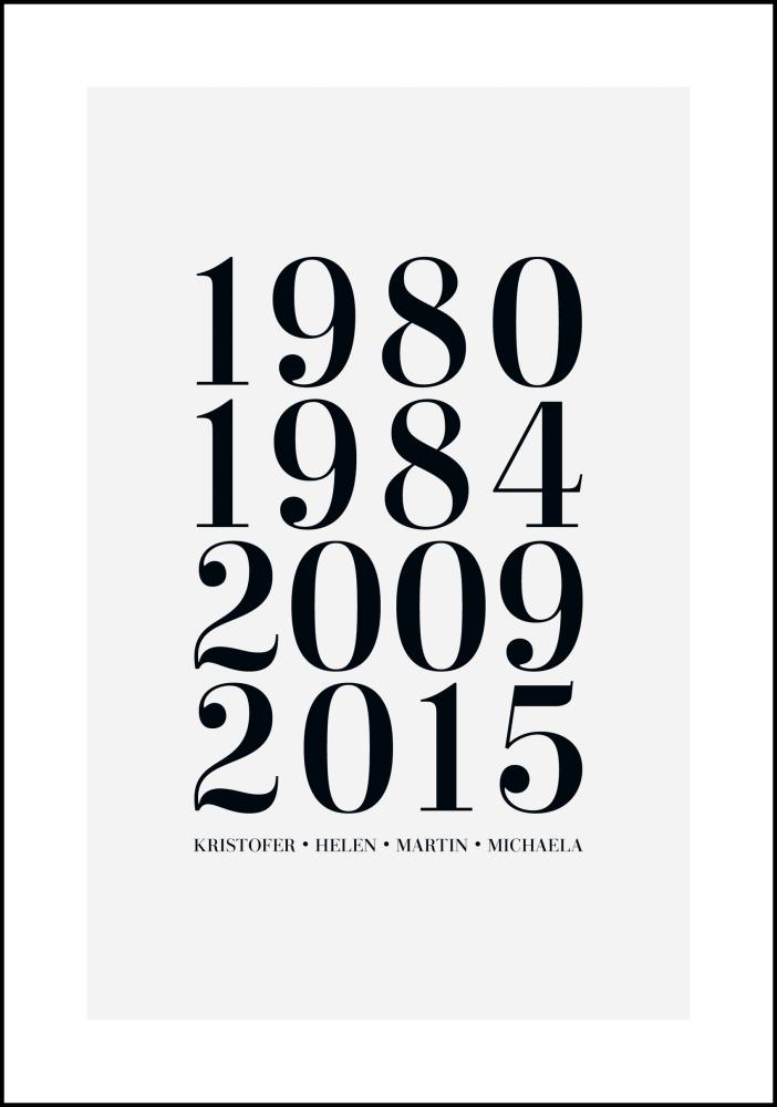 Ein persönliches Poster ist ein einzigartiges und spaßiges Geschenk, sowohl zu geben als auch zu erhalten, und es wird eine schöne Erinnerung sein, die lange gepflegt wird. Du füllst einfach die oben genannten Felder mit den Informationen aus, die du einbeziehen möchtest, und wir erstellen dein persönliches Poster!