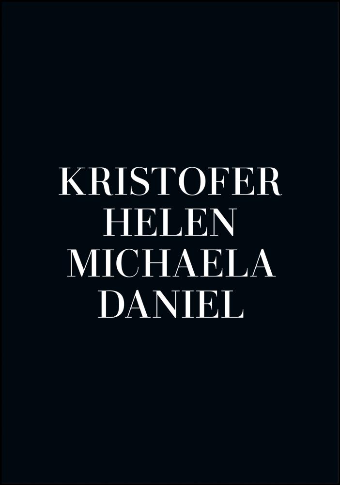 Ein persönliches Poster ist ein einzigartiges und spaßiges Geschenk, sowohl zu geben als auch zu erhalten, und es wird eine schöne Erinnerung sein, die lange gepflegt wird. Du füllst einfach die oben genannten Felder mit den Informationen aus, die du einbeziehen möchtest, und wir erstellen dein persönliches Poster!