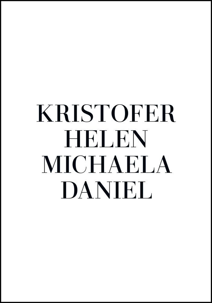 Ein persönliches poster ist ein einzigartiges und spaßiges Geschenk, sowohl zu geben als auch zu erhalten, und es wird eine schöne Erinnerung sein, die lange gepflegt wird. Du füllst einfach die oben genannten Felder mit den Informationen aus, die du einbeziehen möchtest, und wir erstellen dein persönliches poster!
