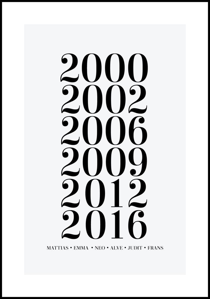 Ein persönliches Poster ist ein einzigartiges und spaßiges Geschenk, sowohl zum Geben als auch zum Erhalten, und es wird eine schöne Erinnerung sein, die lange gepflegt wird. Du füllst einfach die oben genannten Felder mit den Informationen aus, die du einbeziehen möchtest, und wir erstellen dein persönliches Poster!