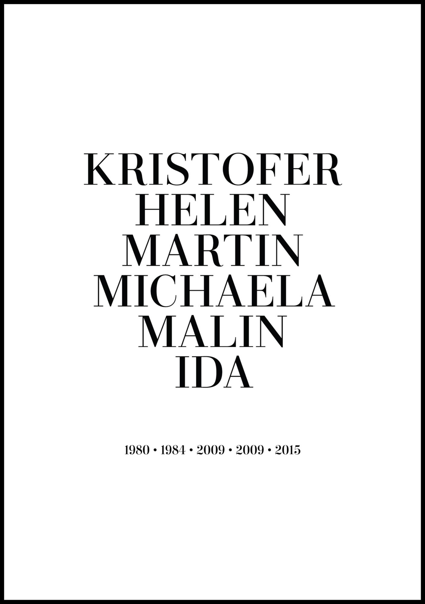 Ein persönliches Poster ist ein einzigartiges und spaßiges Geschenk, sowohl zu geben als auch zu erhalten, und es wird eine schöne Erinnerung sein, die lange gepflegt wird. Du füllst einfach die oben genannten Felder mit den Informationen aus, die du einbeziehen möchtest, und wir erstellen dein persönliches Poster!