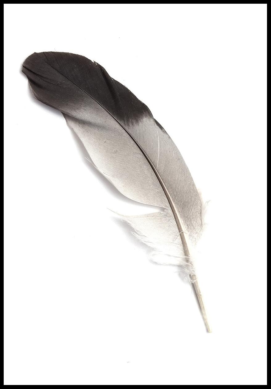 Poster mit der Nahaufnahme der Feder eines Meeresvogels vor weißem Hintergrund. Das grafisch schlichte Motiv weckt romantische Gefühle, die an einsame Strände mit sonnenwarmem Sand denken lassen - und daran, wie ein Vogel zu fliegen. Das Poster macht sich allein aufgehängt ebenso gut wie an einer Bildwand mit Fotos von einem schönen Tag am Strand. Ergänzen Sie es mit einem schwarzen Rahmen, der das Dunkle des Motives betont, oder mit einem weißen Rahmen, der die Feder dramatisch aus der Wand hervortreten lässt.