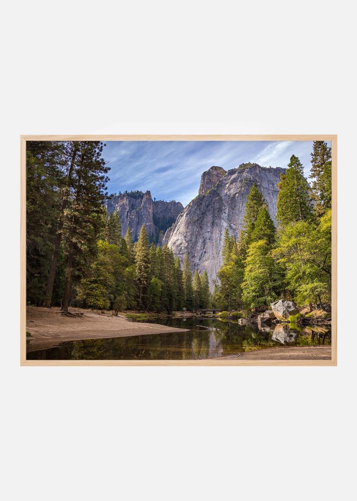 Druck mit hohen Klippen und einem stillen Wald, der sich in einer friedvollen Wasseroberfläche spiegelt. Eine sprechende Stille, die eine friedliche Landschaft schafft. Zusammen mit einem Rahmen aus Naturmaterialien passt das Bild in alle Arten von Einrichtungen und Farbschemata. Hängen Sie das Foto zusammen mit anderen Naturbildern auf oder wählen Sie eine größere Größe, um einen Effekt als alleinstehendes Bild zu erzielen.