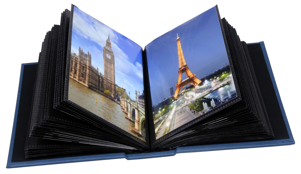 Das Album hat einen starken Einband in einem mattblauen Farbton. Die schwarzen Albumblätter bieten Platz für 1 Bild pro Seite und sind natürlich säurefrei.