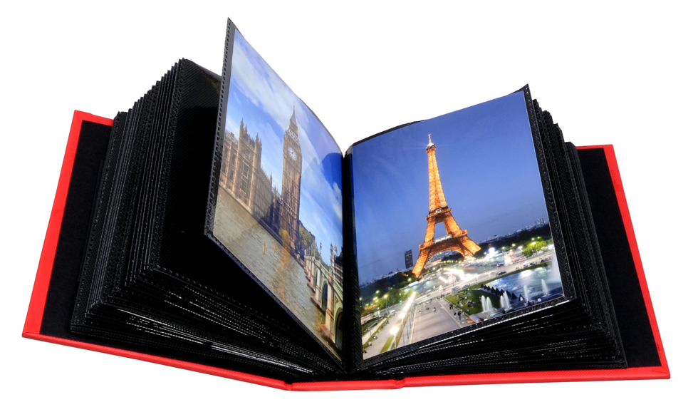 Das Album hat einen starken Einband in einem mattroten Farbton. Die schwarzen Albumblätter bieten Platz für 1 Bild pro Seite und sind natürlich säurefrei.