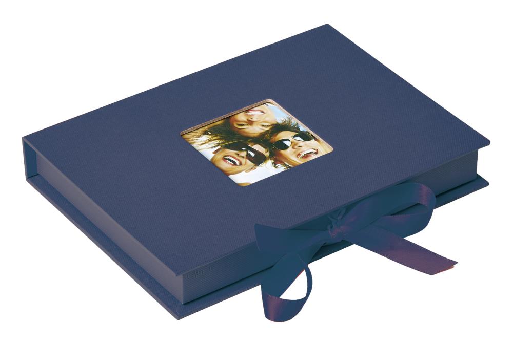Schicke Fotokiste mit modernem Design in einer tollen blauen Farbe, die Platz für 70 Bilder im Format von max. 13x18 cm bietet. Auf der Oberseite der Kiste ist Platz für dein eigenes Bild (6x6 cm), sodass du der Fotokiste ganz einfach eine persönliche Note verleihen kannst.