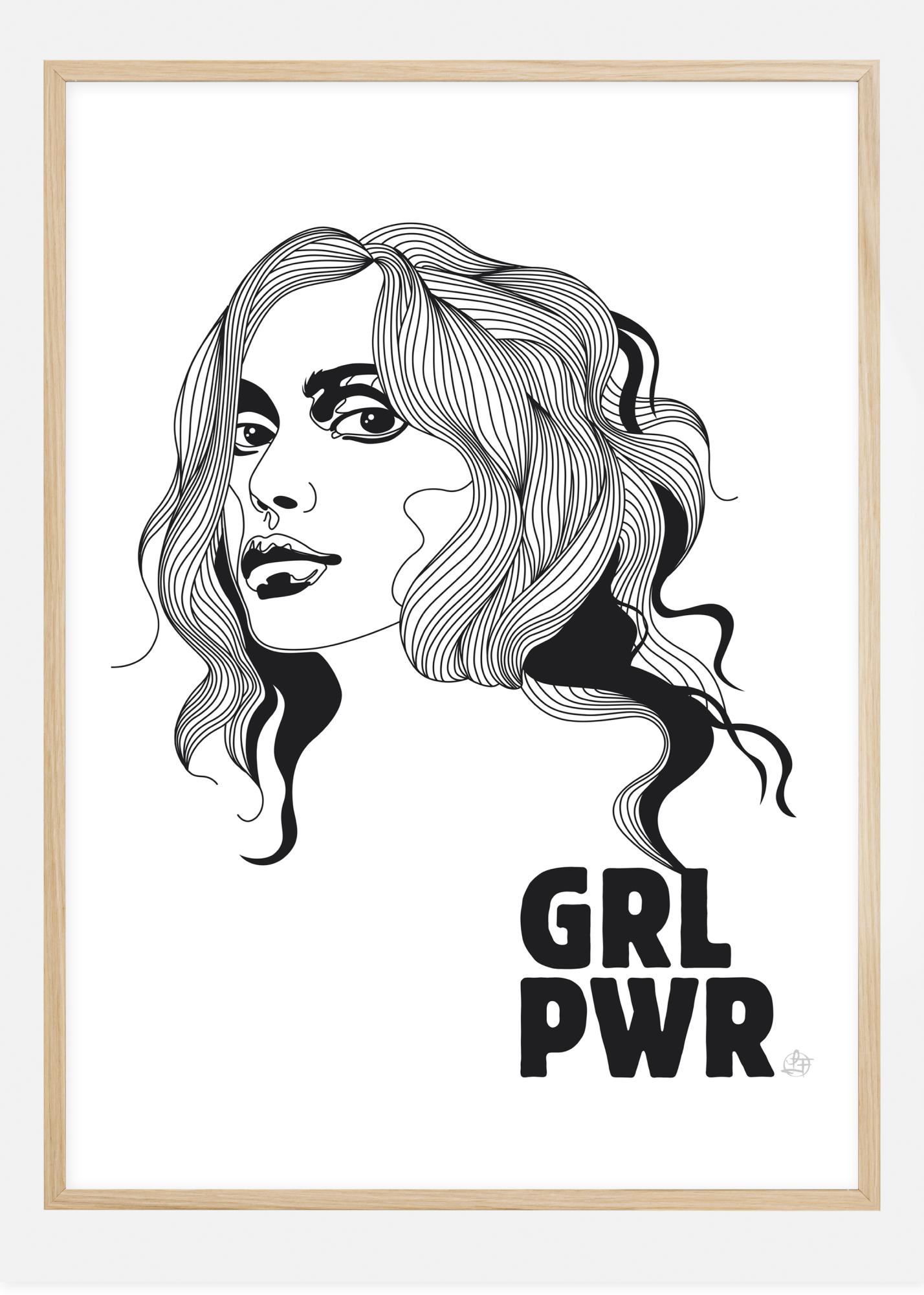 Ein poster mit einer herrlich einstellungsvollen grafischen Illustration und den Botschaften Girl Power (grl pwr), erstellt von Linda Forsberg. Ein einfacher und stilvoller Textposter mit einer klaren Botschaft.