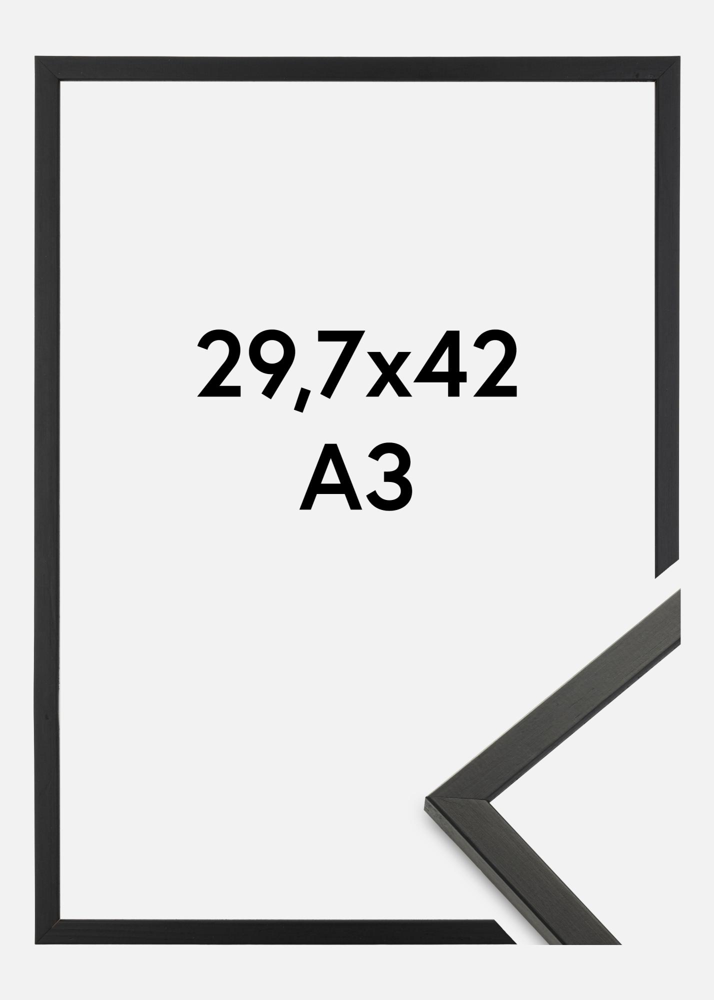 Klassischer schwarzer Bilderrahmen in dunklem Holz, schwarz, passend für Bilder der Größe 29,7x42 cm (A3). Schwarze Bilderrahmen gelten als Klassiker, die für sämtliche Bilder und Motive passen und sich sehr gut mit anderen Farben kombinieren lassen. Der Holzrahmen verfügt über echtes Bilderglas, was wir von BGA sehr schätzen, da die Bildqualität damit nicht beeinträchtigt und das Bildmotiv wirklichkeitsgetreu wiedergegeben wird.