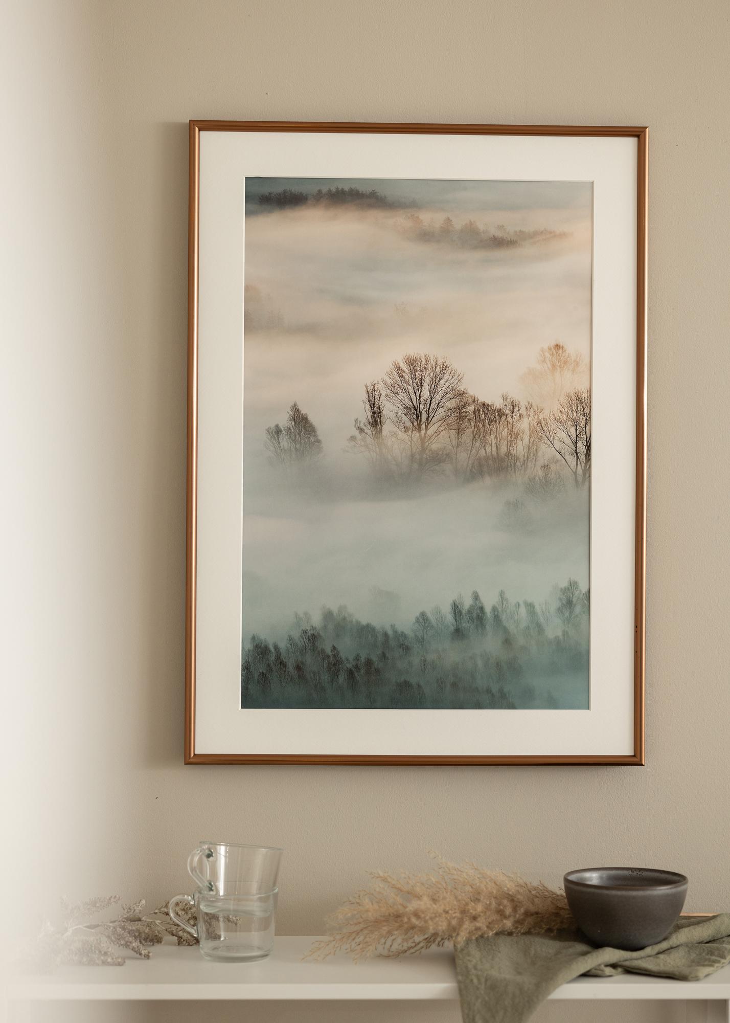 Trendiger Bilderrahmen in einem schönen, glänzenden Kupfer-Farbton. Die teils gerundete Rahmenleiste ist schmal gehalten, besitzt jedoch eine Tiefe von ganzen 19 mm, sodass eine schöne Tiefenwirkung entsteht, auch durch den Abstand von der Wand. Das Bildmotiv wird damit optimal in Szene gesetzt und macht zusammen mit dem kupferfarbenen Bilderrahmen einen tollen Blickfang aus. Der Bilderrahmen kann sowohl im Quer- als auch im Hochformat verwendet werden.