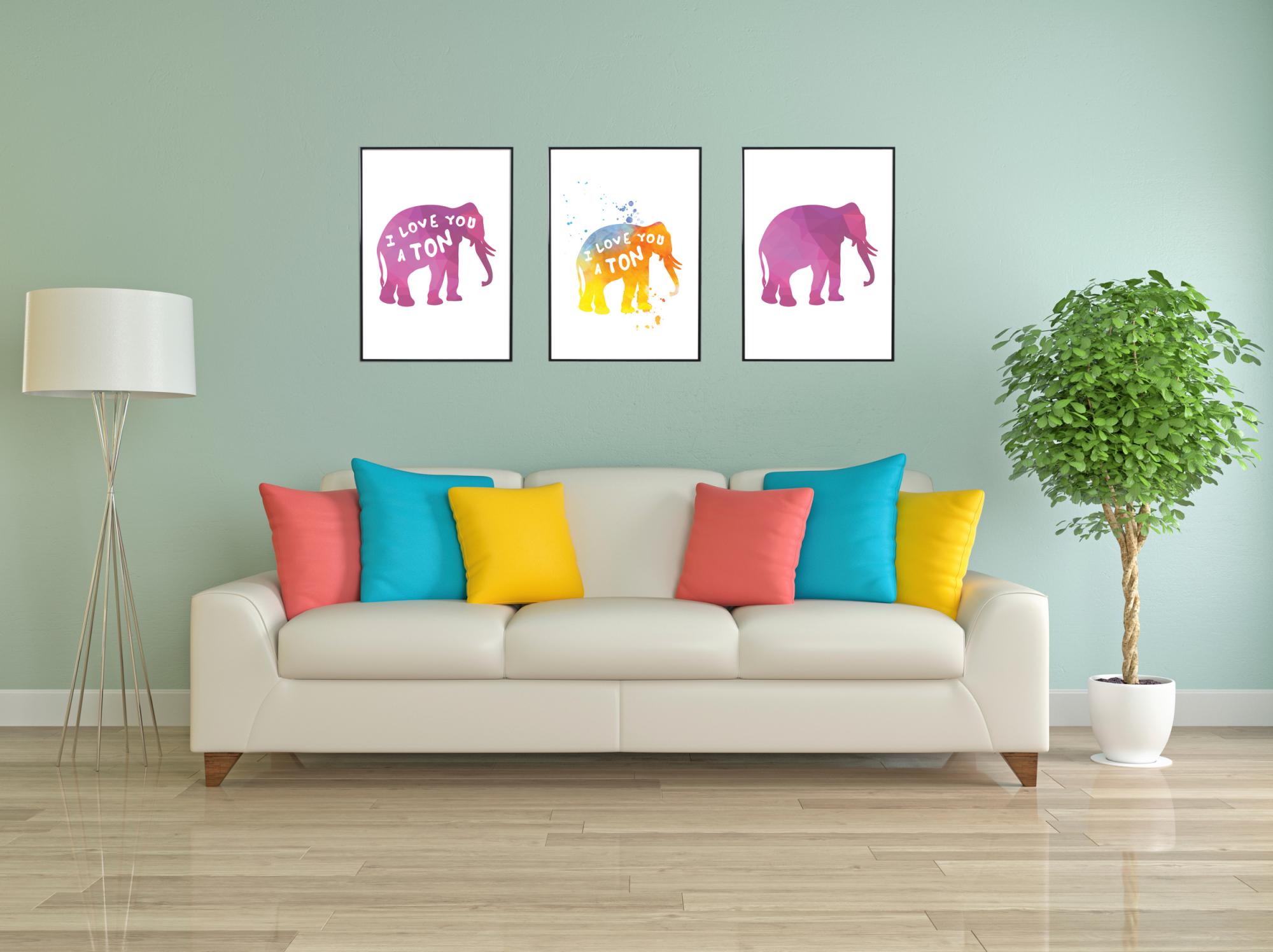 Liebevolles und lustiges Plakat, das sich perfekt als Geschenk für jemanden eignet, der Elefanten liebt und einen Farbtupfer an der Wand haben möchte. Der Elefant scheint mit einem Überfluss an Farben auf weißem Papier gedruckt zu sein, mit Text in weißer Schriftart, die ein handgeschriebenes Gefühl vermittelt. Das Poster ist schön in einem schlichten einfarbigen Rahmen einzurahmen, der die Nuancen im Motiv hervorhebt und der sich gut in die übrige Einrichtung des Raumes einfügt, in dem das Bild aufgehängt werden soll.