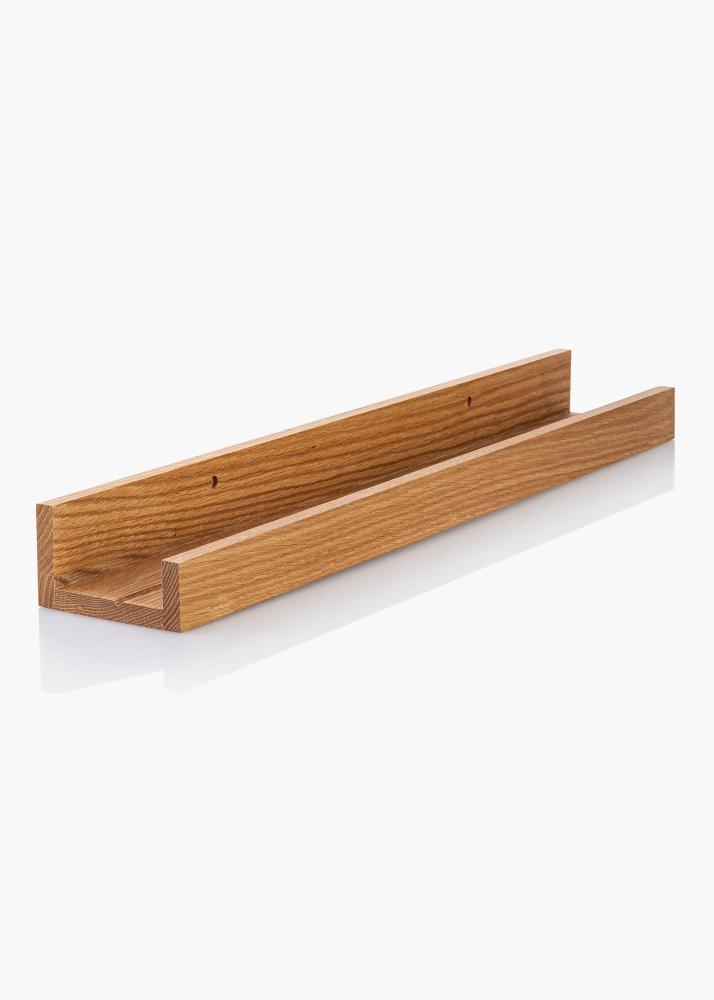 Mit einem praktischen Bilderregal an der Wand können Bilder und Fotos auf elegante und einfache Art und Weise aufgestellt und hübsch präsentiert werden. Außerdem können sie somit schnell und unkompliziert variiert und immer wieder neu arrangiert werden. Eine Bilderleiste als Wandregal bietet viele Möglichkeiten der Wanddekoration, ohne immer wieder unzählig viele Löcher in die Wand bohren zu müssen. Dieses Bilderregal ist aus massiver Eiche gefertigt und zeichnet sich zudem durch das stilvolle Design und die geradlinige, klare Formensprache aus. Der Regalboden ist mit einer ausgefrästen Rille versehen, sodass die Bilder im optimalen Winkel an die Wand gelehnt aufgestellt werden können, ohne zu verrutschen. Das Bilderregal Eiche massiv ist in mehreren Größen erhältlich. Das abgebildete Bilderregal hat eine Länge von 100 cm. Das Bilderreagl ist mit vorgebohrten Löchern ausgestattet und im Lieferumfang enthalten sind Schrauben und Dübel, was das Ganze noch einfacher macht.