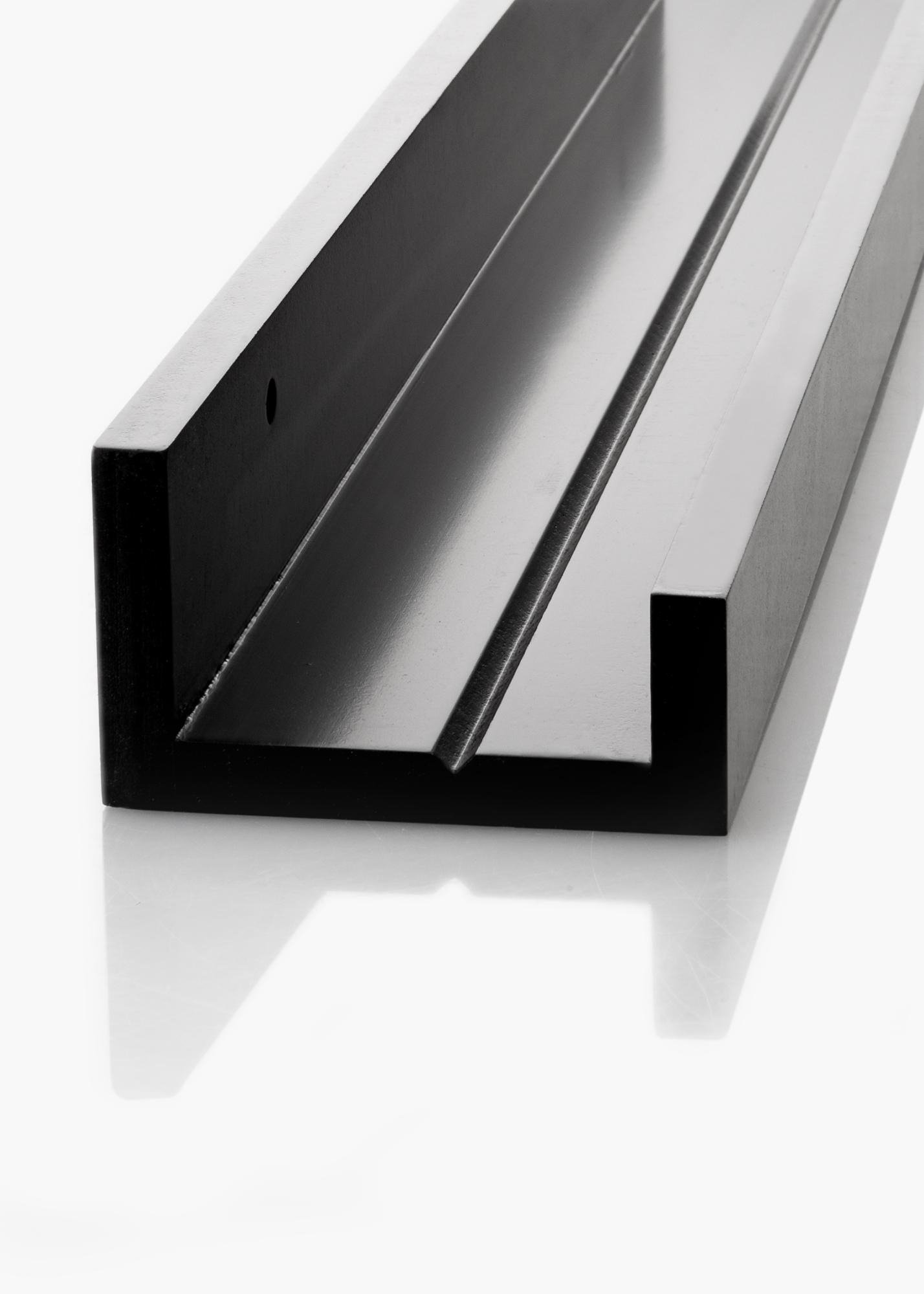Bilder, Wanddekoration und Kunst an der Wand einfach und hübsch präsentieren und variieren mit einer schönen Bilderleiste als Wandregal bzw. Bilderregal. Super praktisch und dekorativ. Diese Bilderleiste ist aus MDF gefertigt und zeichnet sich durch die schwarze, matt-glänzende Oberfläche aus. Die Bilderleiste überzeugt durch die geradlinige Formensprache und das stilsichere, minimalistische Design. Der Regalboden ist in der Mitte mit einer ausgefrästen Rille versehen, sodass die Bilder in optimalem Winkel an die Wand gelehnt aufgestellt werden können und nicht verrutschen.