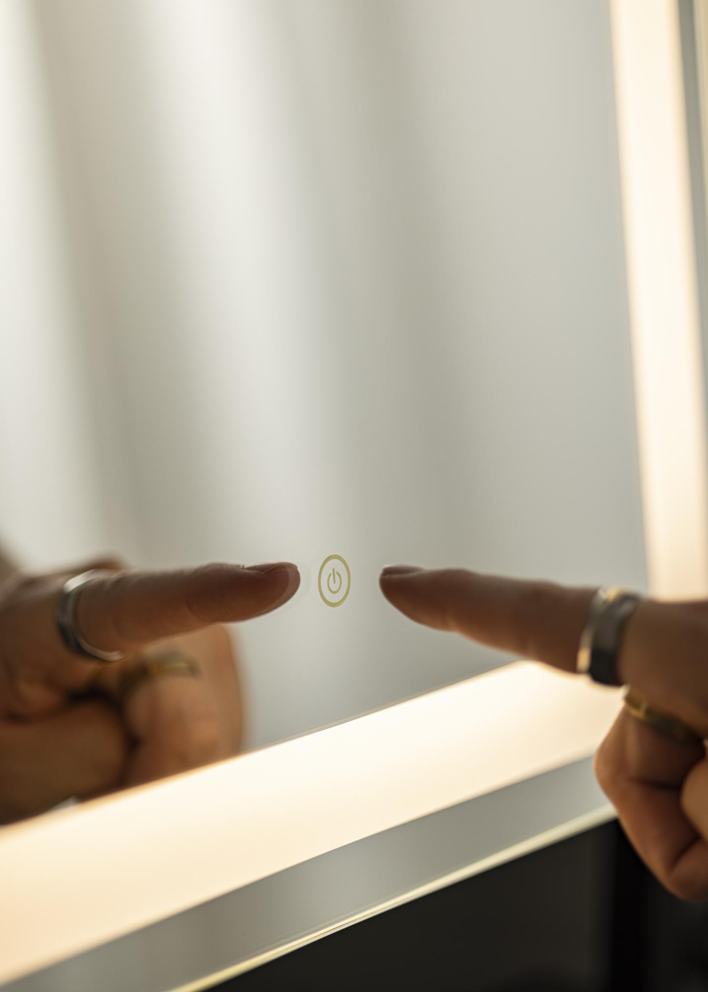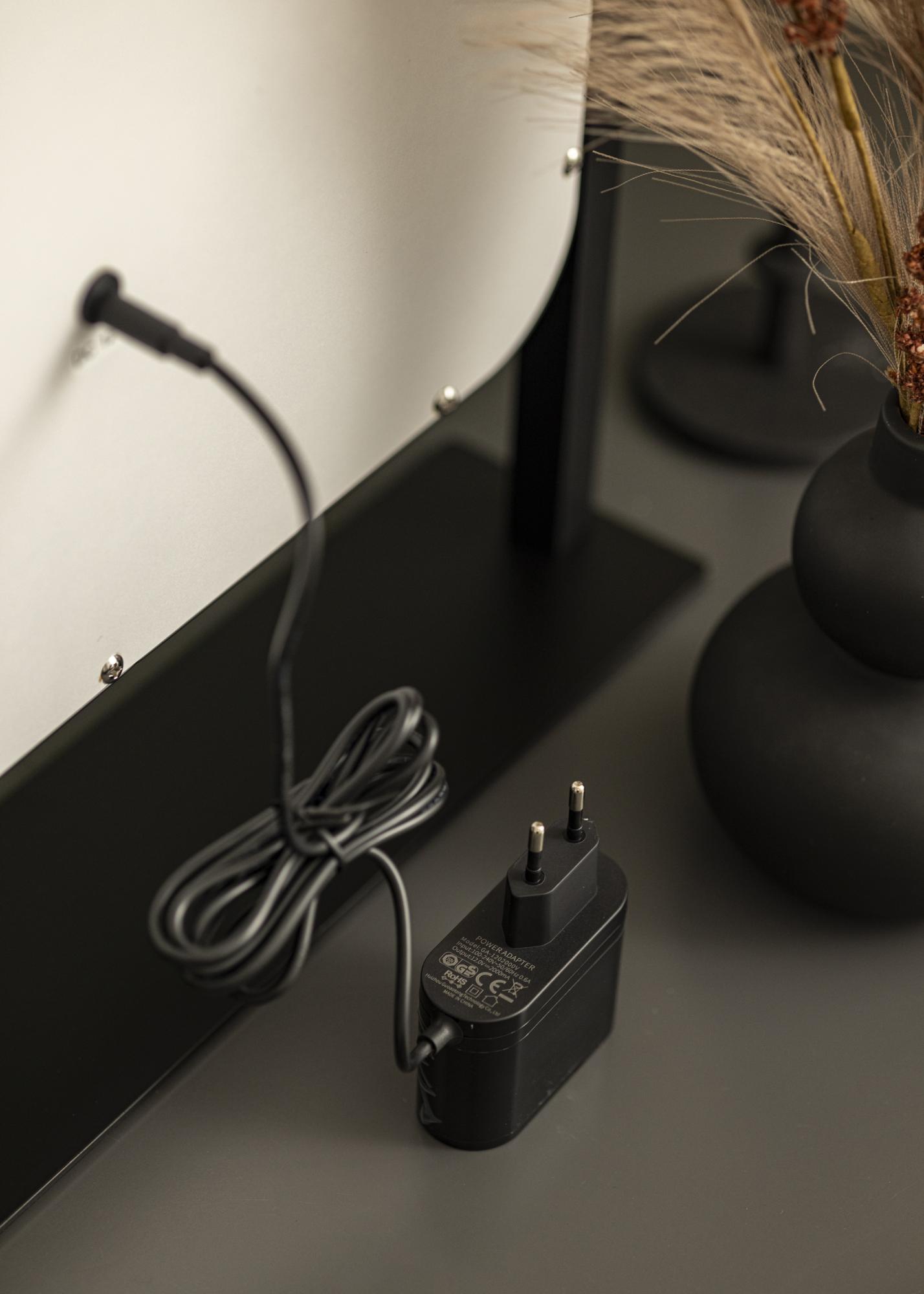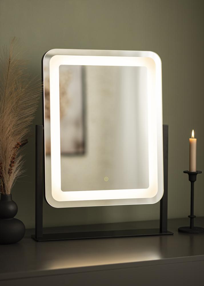 Ein trendy Make-Up-Spiegel für alle, die auf angesagtes Design stehen! Der Schminkspiegel in schwedischem Design von KAILA überzeugt durch seinen trendigen schwarzen Farbton und den gefrosteten Rand mit integrierter LED-Beleuchtung rund um das Spiegelglas. Die LED-Beleuchtung im angenehmen Warmweiß von 3000K ist optimal für das Auftragen von Make-Up. Die Beleuchtung wird einfach durch Drücken des Touch-Sensors eingeschaltet. Indem die Sensor-Taste gedrücktgehalten wird, kann gedimmt werden. Der Schminkspiegel besitzt die Maße 45x60 cm und kann im Winkel verstellt werden, sodass man sich aus verschiedenen Positionen bestens spiegeln bzw. sehen kann.
