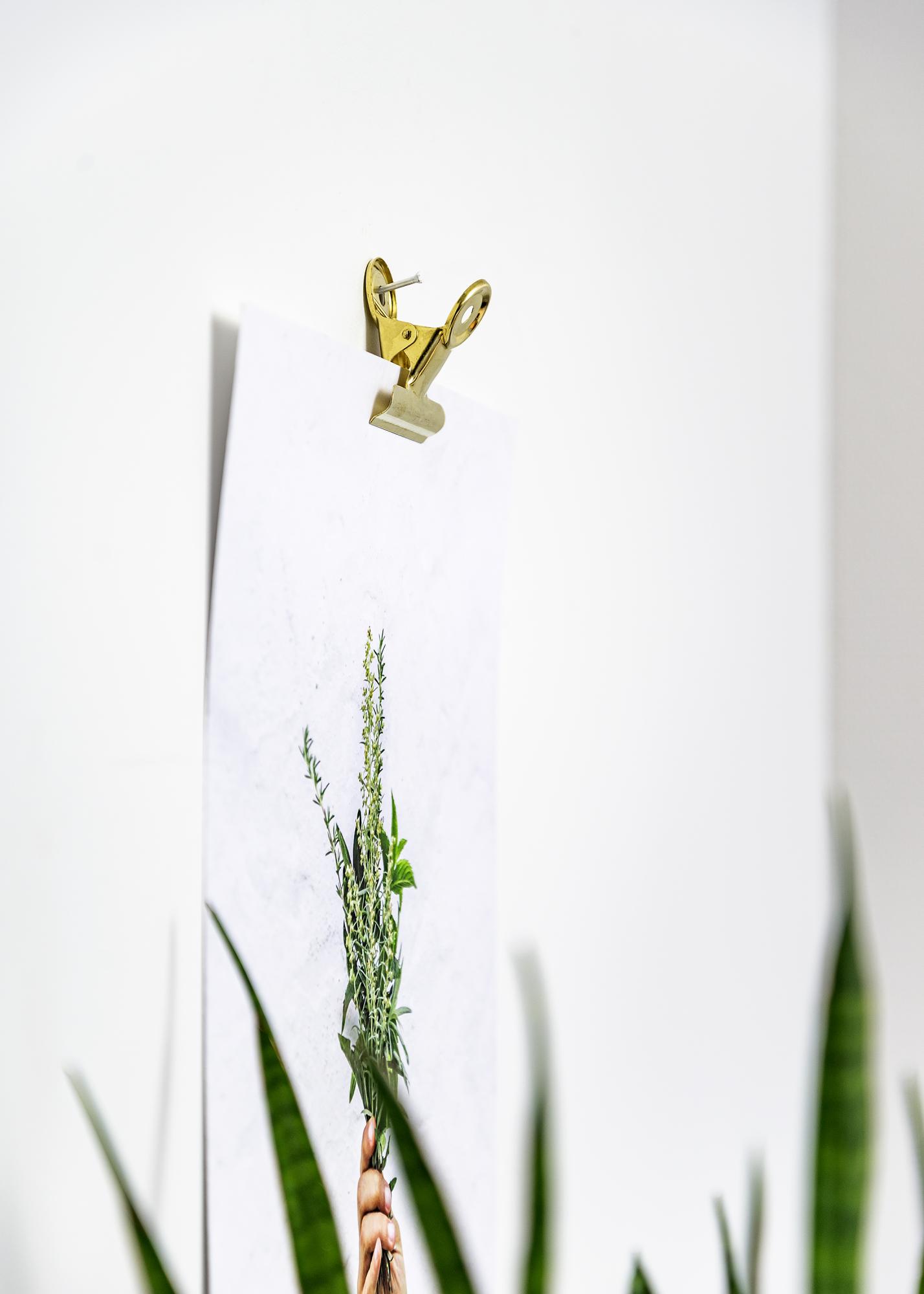 Posterklammer gold mit elegant glänzendem Finish, macht sich toll als Poster Aufhängeklemme, trendy und zugleich minimalistisch. Dieser Posterclip zeichnet sich durch stilvolles Design aus und die Löcher in den Enden machen die Befestigung an der Wand, mittels Schraube oder Nagel, sehr einfach. Die Metallklammer ist sehr stark und hält auch sehr dünnes Papier zuverlässig fest. Die Metalklammer für Papier, Poster etc. ist flexibel und eignet sich für das Festklemmen vieler Formate und verschiedener Papier-/Posterstärken. Für das Aufhängen großer Poster oder Drucke empfiehlt es sich, mind. zwei Metallklammern zu verwenden.