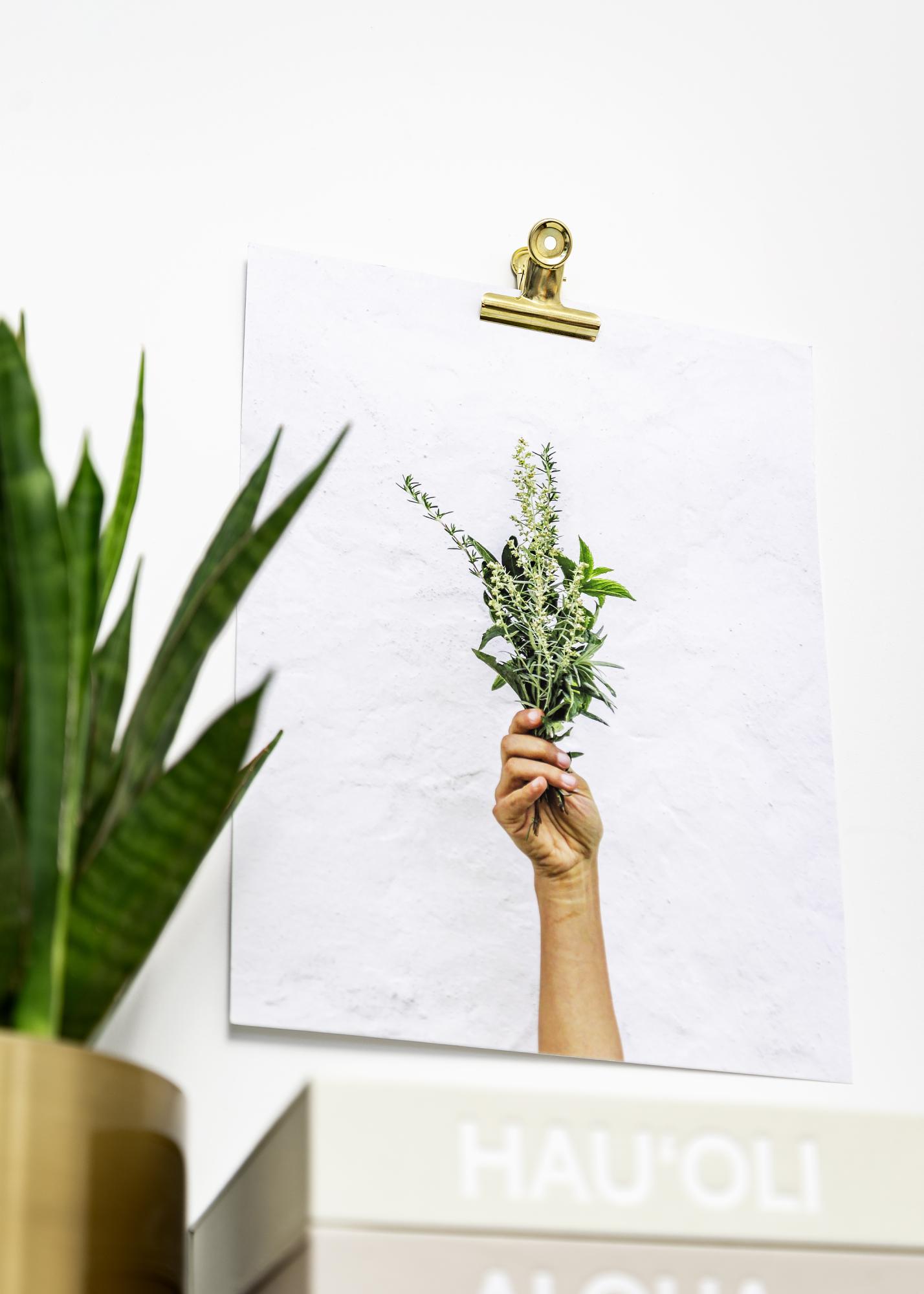 Posterklammer gold mit elegant glänzendem Finish, macht sich toll als Poster Aufhängeklemme, trendy und zugleich minimalistisch. Dieser Posterclip zeichnet sich durch stilvolles Design aus und die Löcher in den Enden machen die Befestigung an der Wand, mittels Schraube oder Nagel, sehr einfach. Die Metallklammer ist sehr stark und hält auch sehr dünnes Papier zuverlässig fest. Die Metalklammer für Papier, Poster etc. ist flexibel und eignet sich für das Festklemmen vieler Formate und verschiedener Papier-/Posterstärken. Für das Aufhängen großer Poster oder Drucke empfiehlt es sich, mind. zwei Metallklammern zu verwenden.