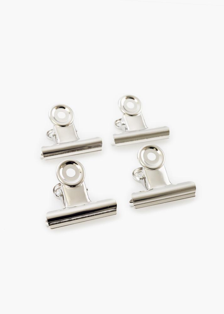 Diese hübsche Metallklammer Poster Clip ist in verschiedenen Größen erhältlich. Abgebildet ist die Posterklammer mit einer Klemmbreite von 40 mm. Erhältlich im 4er-Pack.