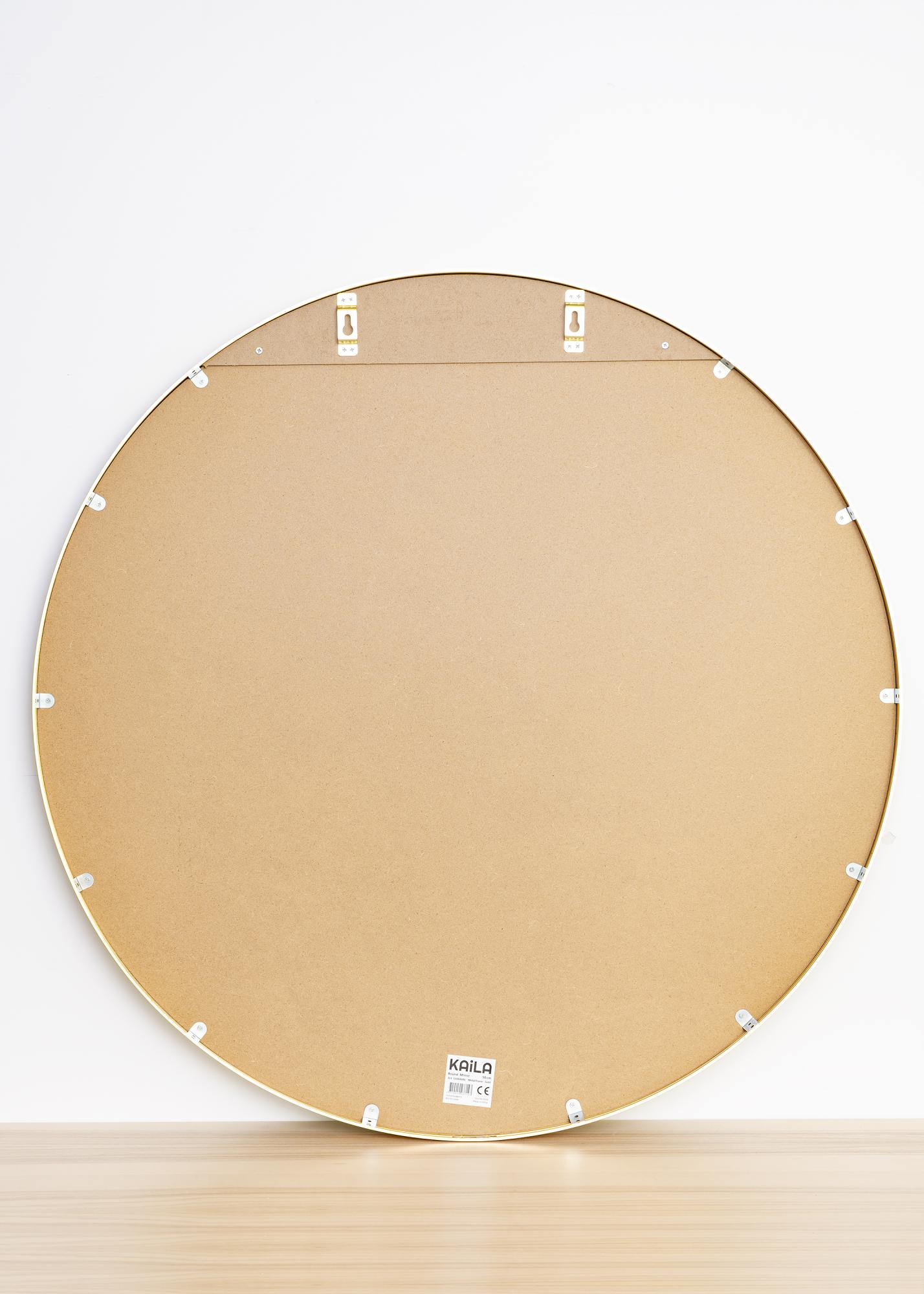KAILA Round Mirror Edge Gold ist in verschiedenen Größen erhältlich. Diese Variante hat einen Durchmesser von 100 cm. Auf der Rückseite des Spiegels befinden sich zwei vormontierte Wandhalterungen, die eine einfache und stabile Befestigung an der Wand ermöglichen. Passende Schrauben und Dübel werden mitgeliefert.