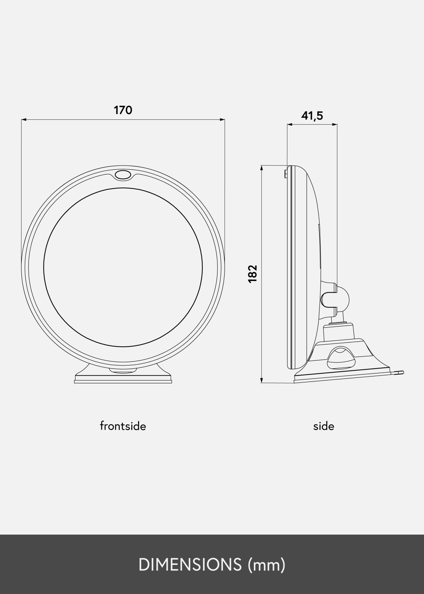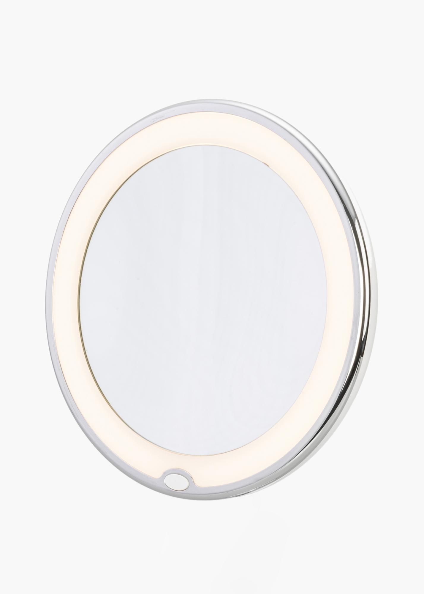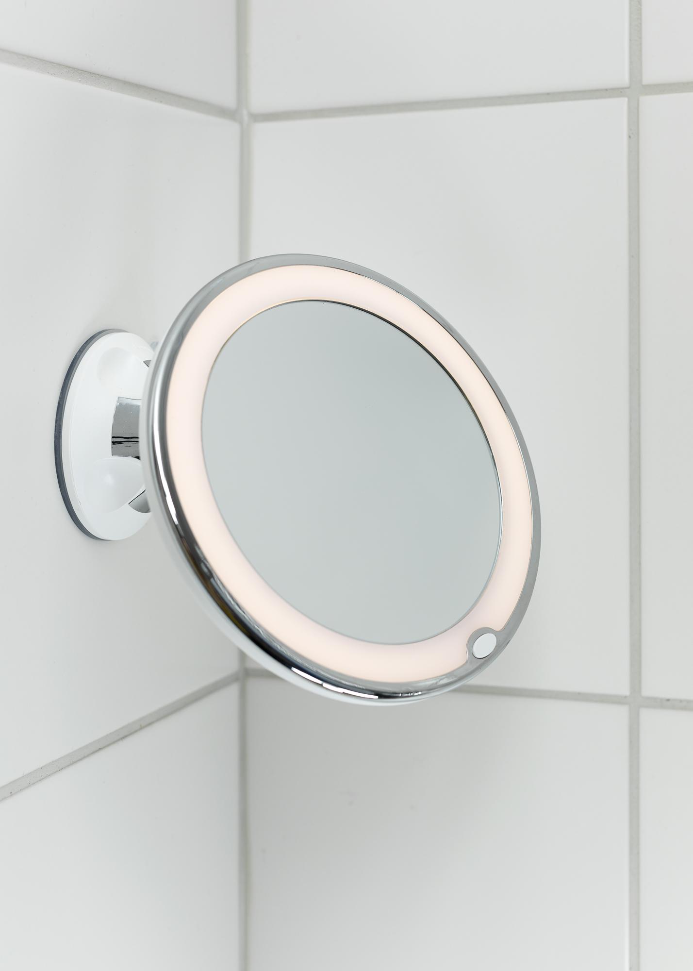 Dieser klassische Badezimmerspiegel mit Licht von KAILA überzeugt durch seine schöne Formgebung, aber nicht nur das. Der elegante Badspiegel ist mit integrierter LED-Beleuchtung ausgestattet, die das Spiegelglas hübsch einrahmt. Der LED-Badspiegel mit einem Durchmesser von 17 cm bietet eine 5x Vergrößerung. Anders ausgedrückt ist dieser beleuchtete Badspiegel optimal geeignet, ein scharfes Bild wiederzugeben. Prima beim Schminken. Der Spiegel zeichnet sich nicht nur durch seine Funktion aus, sondern stellt auch ein dekoratives Einrichtungsdetail dar, das schnell weggeräumt werden kann, wenn es nicht benötigt wird. Durch die kompakten Maße des Spiegels ist das kein Problem. Der Badspiegel kann mit dem beiliegenden Saugnapf einfach an der Wand oder auch an Fliesen oder Tisch befestigt werden. Der Saugnapf lässt sich arretieren, sodass der Spiegel in eine Position fest eingestellt werden kann. Der Spiegel ist bei Lieferung nicht montiert.
