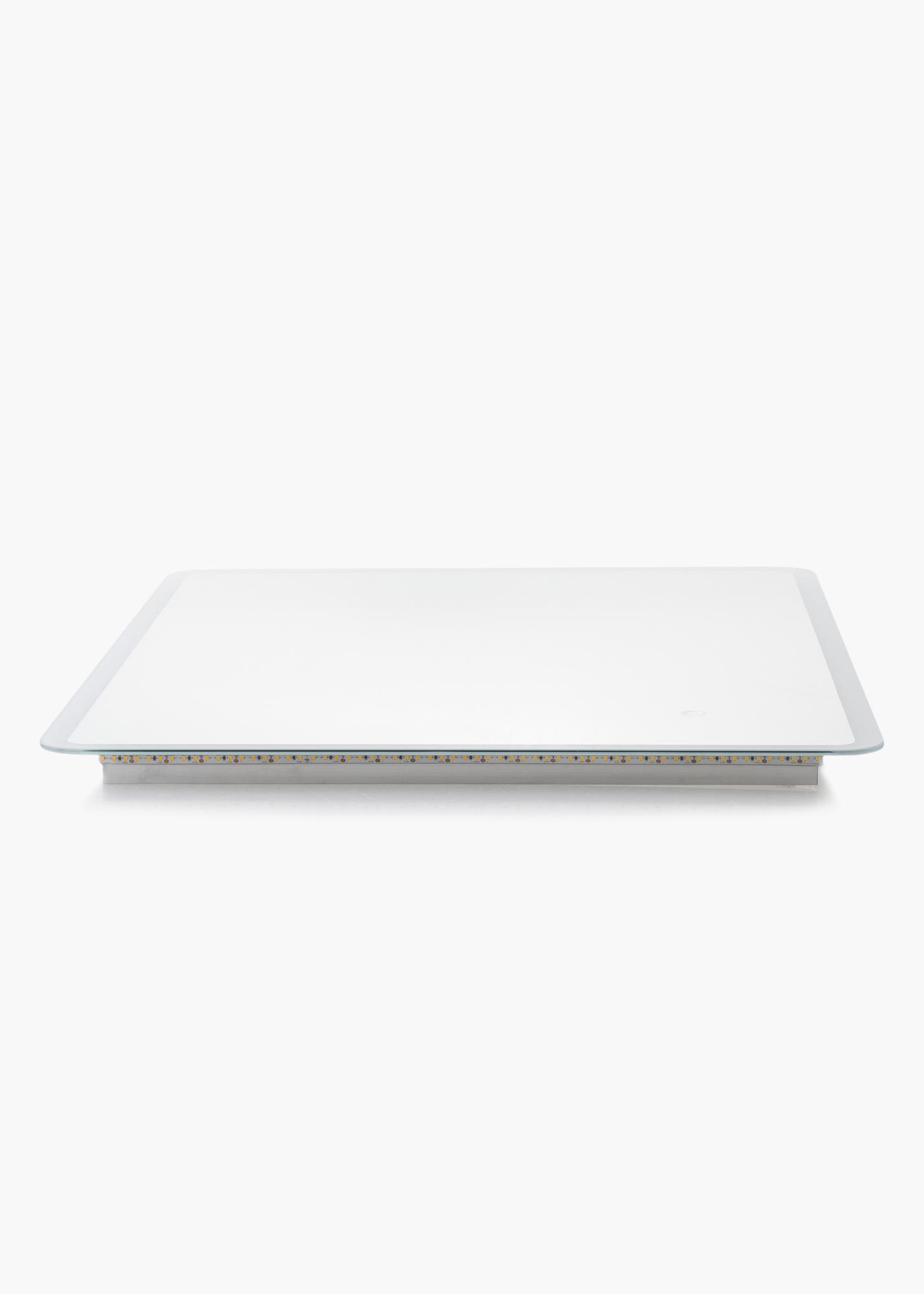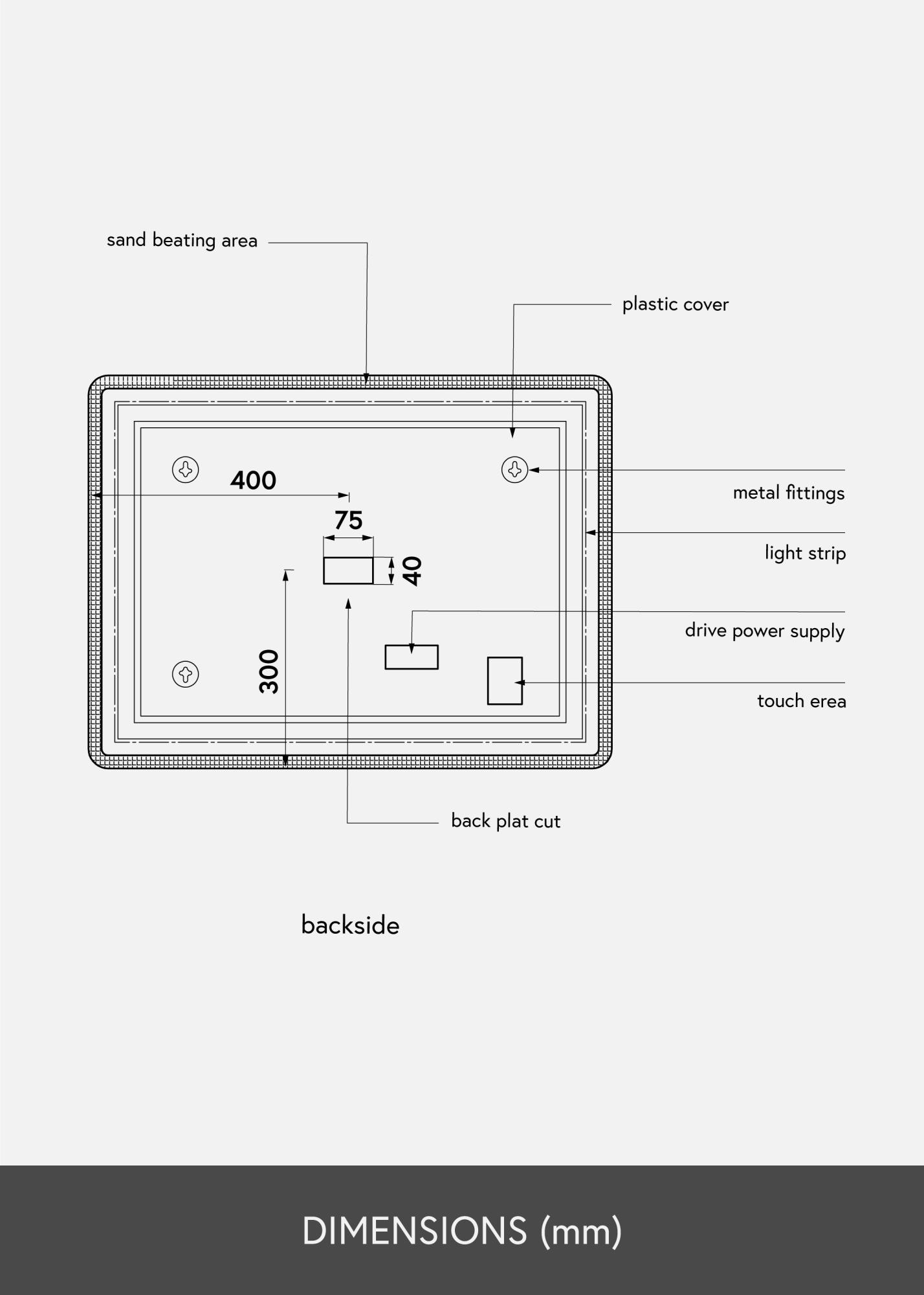 Badezimmerspiegel mit Licht in zeitlosem Design, rechteckig, mit abgerundeten Kanten und Ecken. Entlang der Kante verläuft eine integrierte LED-Beleuchtung, die den Spiegel hübsch einrahmt. Die LED-Beleuchtung scheint dekroativ hinter dem Spiegel hervor und beleuchtet den Spiegel mit einem angenehm warmweißen Lichtschein von 3000 K. Die Beleuchtung ist dimmbar und wird einfach mittels eines wasserdichten Touch-Sensors gesteuert: Durch Gedrückthalten der Touch-Taste für einige Sekunden lang wird die gewünschte Lichtstärke eingestellt. Die letzte gewählte Einstellung bleibt beim erneuten Einschalten der Beleuchtung erhalten. Der Spiegel ist für die Verwendung in Badezimmern geeignet. Der Spiegel ist für feste Installation vorgesehen und muss an einen Stromschalter angeschlossen werden. Damit der Spiegel ordnungsgemäß und korrekt funktioniert, muss er an einen normalen Schalter angeschlossen werden, nicht an einen Dimmschalter.
