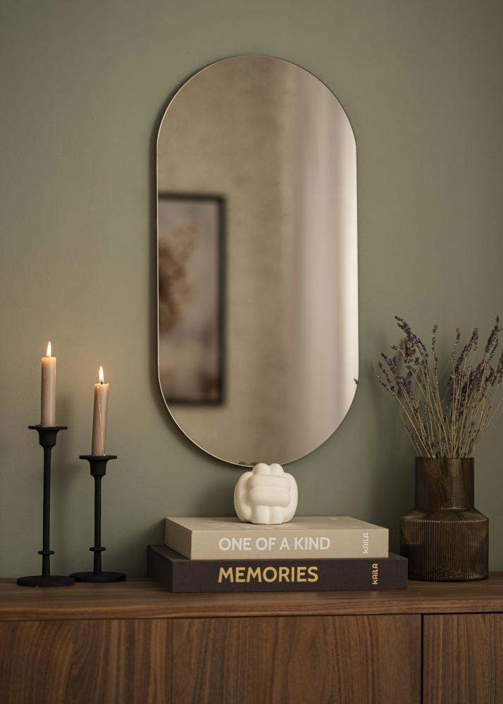 Der ovale Wandspiegel zeichnet sich durch seine sanfte, elegante Ausstrahlung aus. Dieses Spiegelmodell kommt zudem mit getöntem Spiegelglas in einem stilvollen, etwas dunkleren bronzefarbenen Farbton daher. Das wirkungsvoll getönte Glas des Spiegels wird durch das hübsche, trendy Design des im Profil flachen, rahmenlosen Spiegels gekonnt ergänzt. Das Ergebnis: Ein toller Blickfang und modernes Einrichtungsaccessoire, das in nahezu jeden Raum passt, wo auch immer Funktion und angesagtes schwedisches Design zum Wohlfühlen zuhause beitragen können.