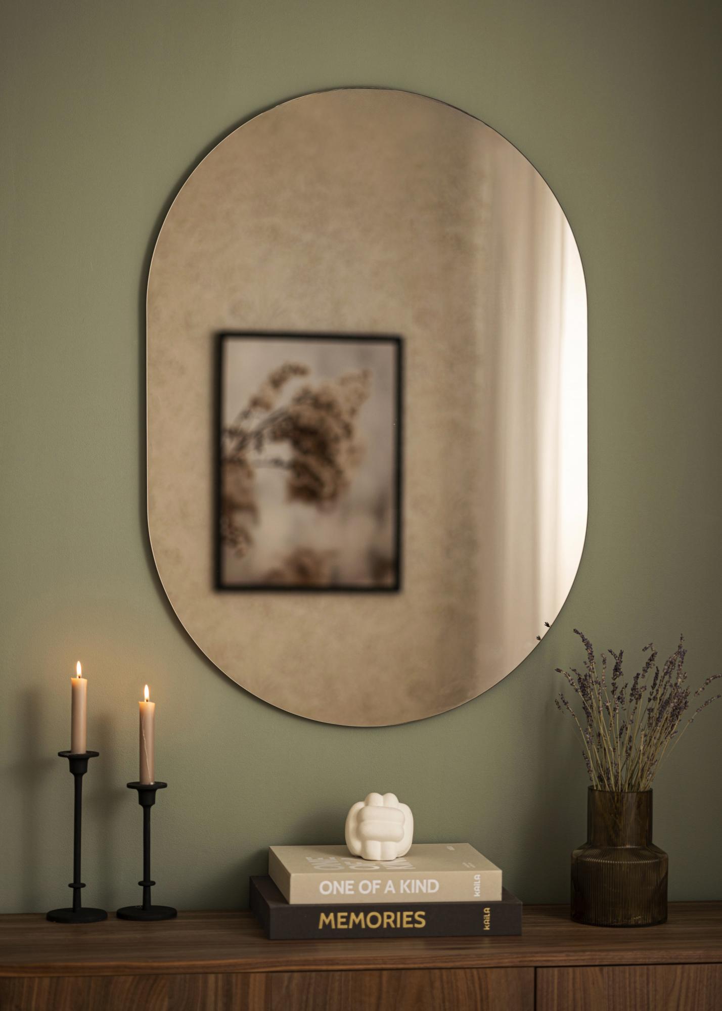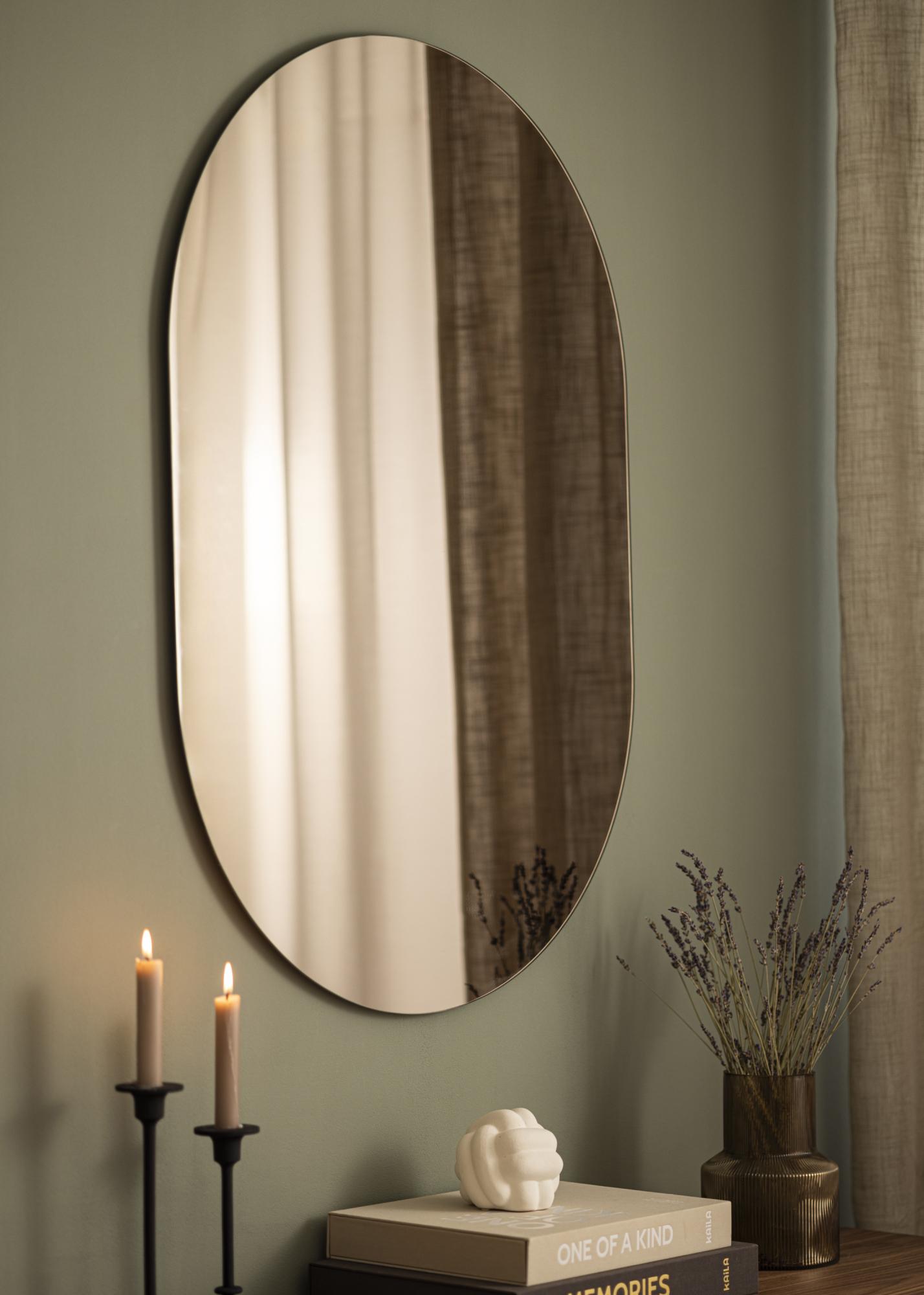 Der ovale Wandspiegel zeichnet sich durch seine sanfte, elegante Ausstrahlung aus. Dieses Spiegelmodell kommt zudem mit getöntem Spiegelglas in einem stilvollen, etwas dunkleren bronzefarbenen Farbton daher. Das wirkungsvoll getönte Glas des Spiegels wird durch das hübsche, trendy Design des im Profil flachen, rahmenlosen Spiegels gekonnt ergänzt. Das Ergebnis: Ein toller Blickfang und modernes Einrichtungsaccessoire, das in nahezu jeden Raum passt, wo auch immer Funktion und angesagtes schwedisches Design zum Wohlfühlen zuhause beitragen können.