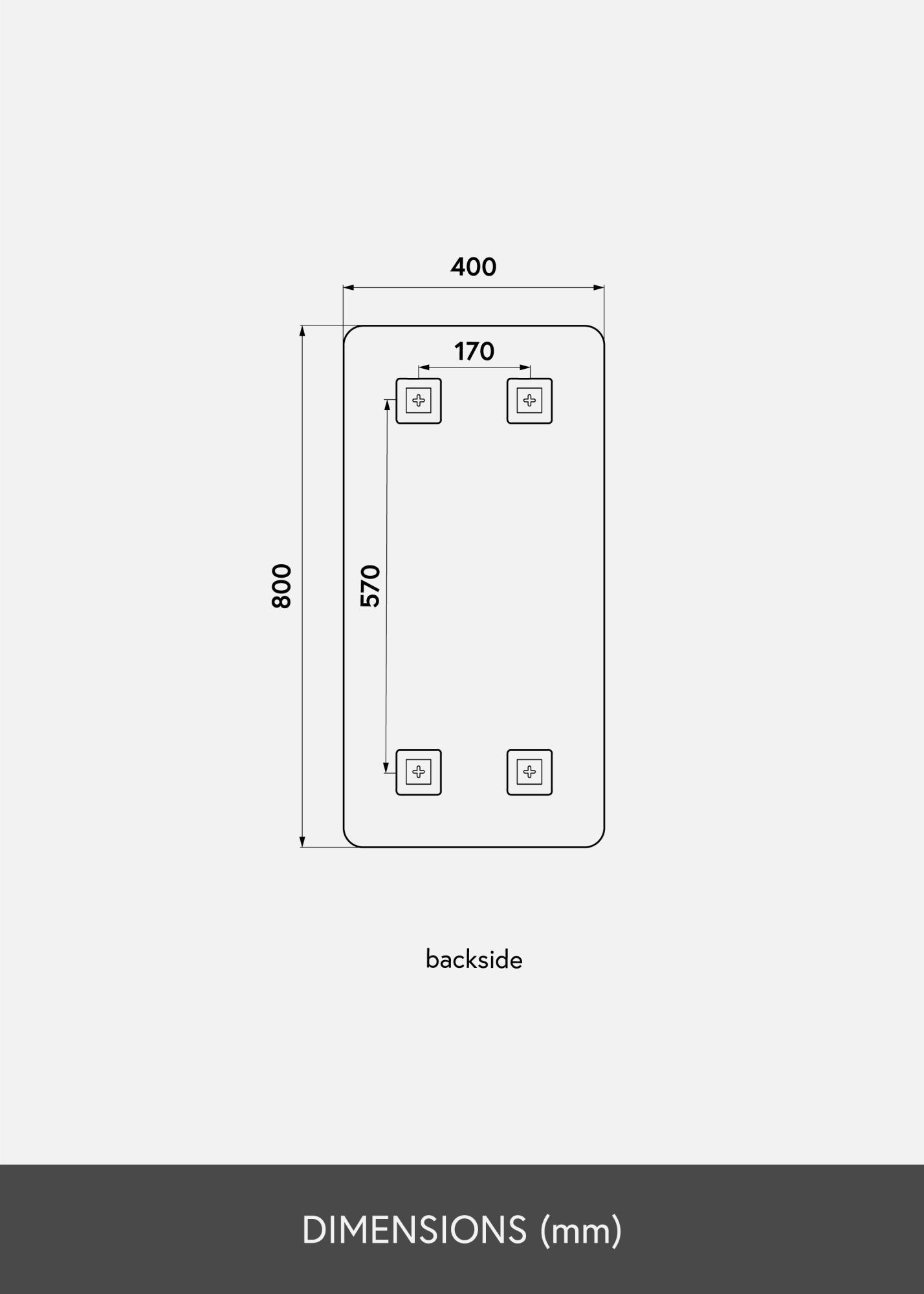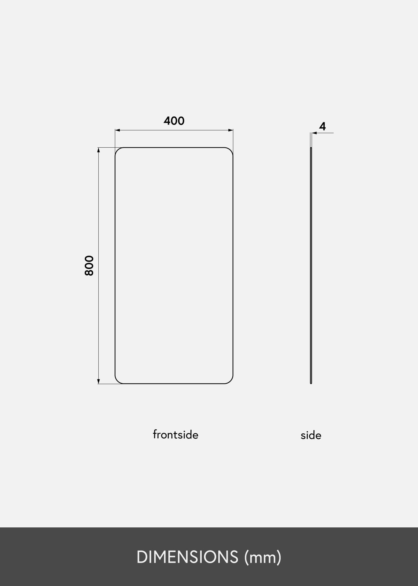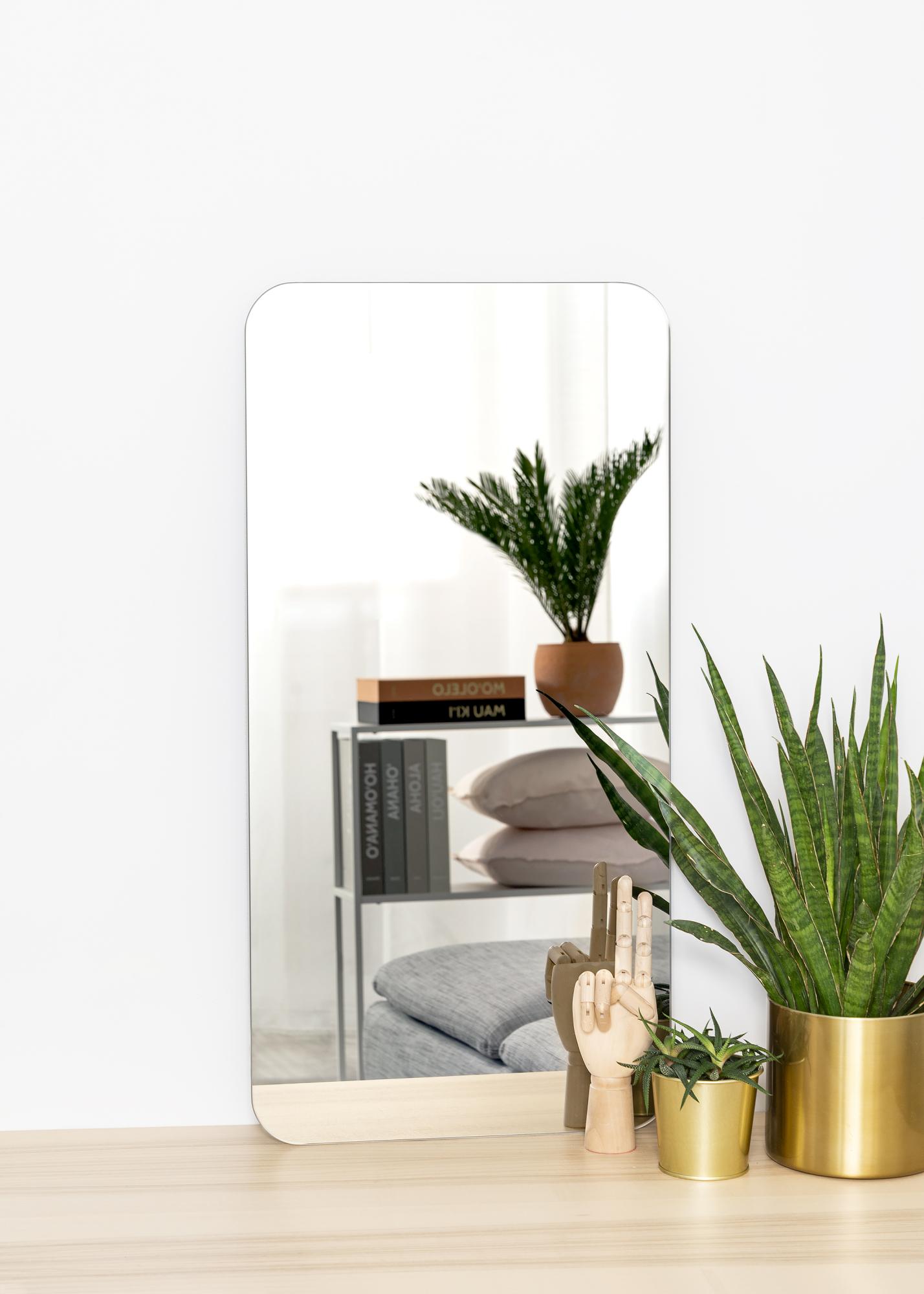 Ein rechteckiger Spiegel mit dem gewissen Etwas: abgerundete Ecken, die ihm Sanftheit und Eleganz verleihen. Der Spiegel ist außerdem besonders dünn und hat keinen Rahmen, was ihm einen minimalistischen Touch verleiht.