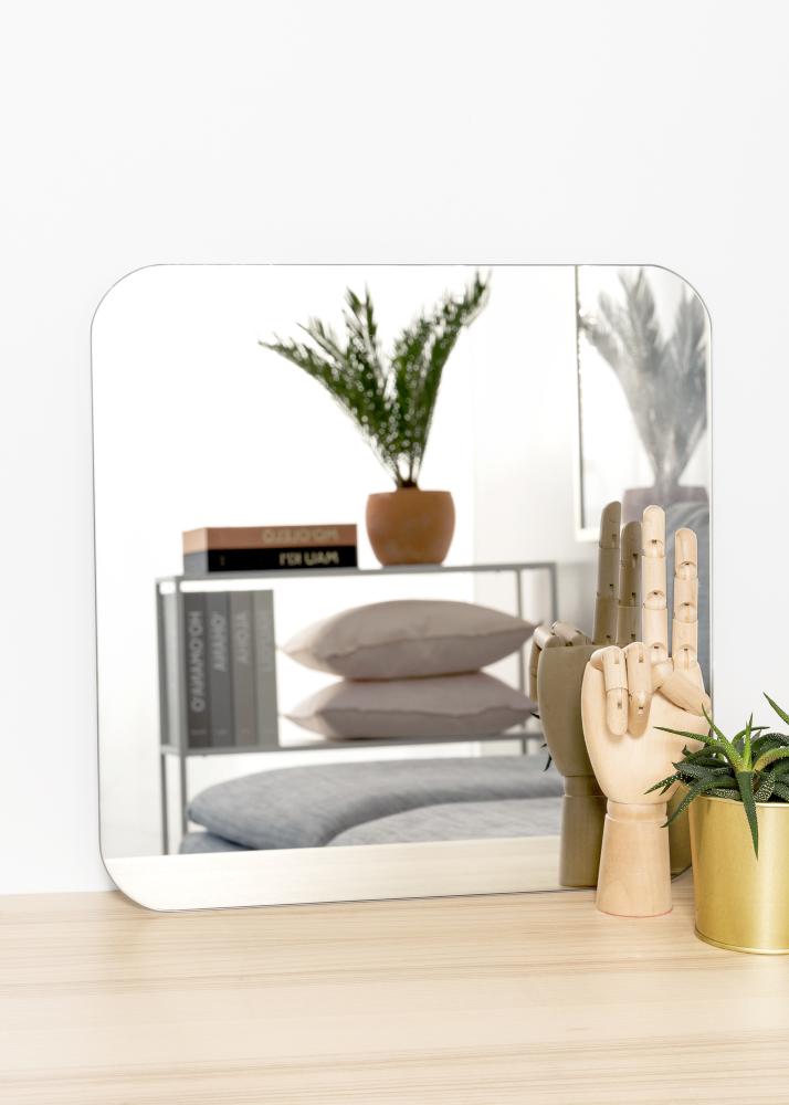Durch die abgerundeten Ecken wird die Wirkung dieses viereckigen Spiegels etwas aufgelockert und zugleich eine elegante Atmosphäre erzeugt. Der Spiegel ist außerdem nur 4 mm dünn und hat keinen Rahmen, was ihm ein minimalistisches Aussehen verleiht und dazu führt, dass er in jedes Zuhause passt.