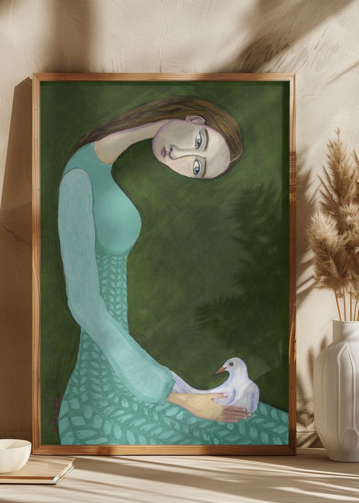 https://www.bgastore.at/Lady-sitting-with-white-dove-bird-woman-Poster-60x90-cm