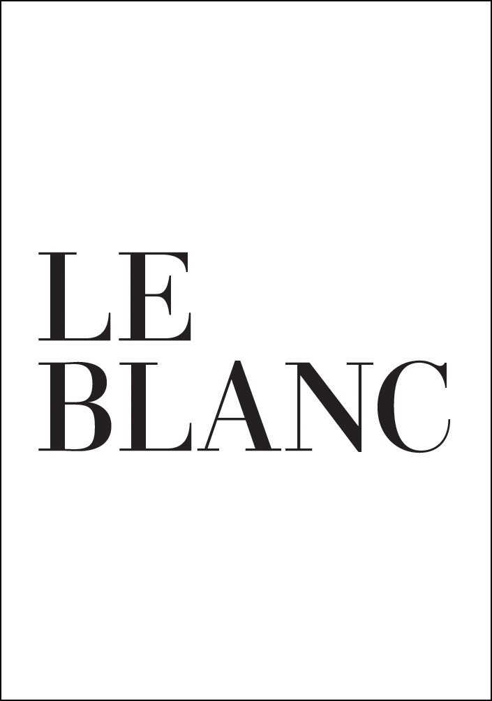 Ein einfaches und stilvolles Poster mit der Botschaft "Le blanc", Das Weiße. Ein Poster, das hervorragend in das moderne und minimalistische Zuhause passt und perfekt ist, um Teil eines größeren Kollages zu sein.