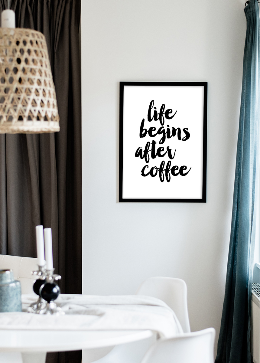 Du weißt, dass du heute bei der Arbeit gut abschneiden wirst und dass du danach sogar noch Energie für das Zusammensein mit Familie und Freunden haben wirst. Aber die Tatsache ist, dass du, bevor du irgendetwas davon tun kannst, eine Tasse belebenden Kaffee brauchst. Es ist nichts, wofür man sich schämen müsste! Hänge stattdessen dieses herrliche poster an die Wand und genieße eine Tasse des wunderbaren Getränks. Das plakat ist weiß mit einem schwarzen print in Form des Textes ”Life begins after coffee”, geschrieben in einer verspielten und verschlungenen Schriftart. Küchentafeln werden oft sehr schön zusammen mit silberfarbenen bilderrahmen, die zu Spülbecken, Mischbatterie und anderen Metallteilen passen, die normalerweise in einer Küche zu finden sind. Das poster ist in verschiedenen Größen und Preisklassen erhältlich.