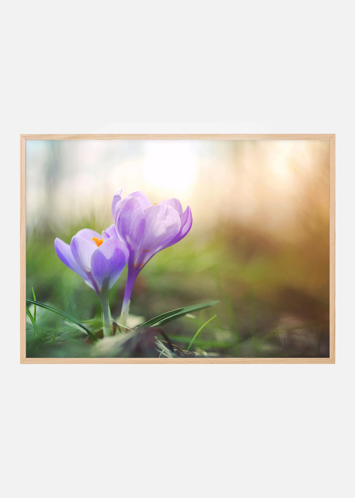 Ein bezauberndes Bild des vielleicht farbenprächtigsten Sonnenanbeters des Frühlings, des Krokus. Der verschwommene Hintergrund in Komplementärfarbe hebt die Blumen hervor und verleiht dem Foto Harmonie. Geeignet für jeden, der Farbenfreude in sein Zuhause bringen möchte, und es ist immer schön, einen Farbton aus dem Bild als Akzentfarbe in der übrigen Einrichtung zu verwenden. Kombinieren Sie es gerne mit anderen Pflanzenmotiven, um ein ganzheitliches Gefühl im Raum zu schaffen.