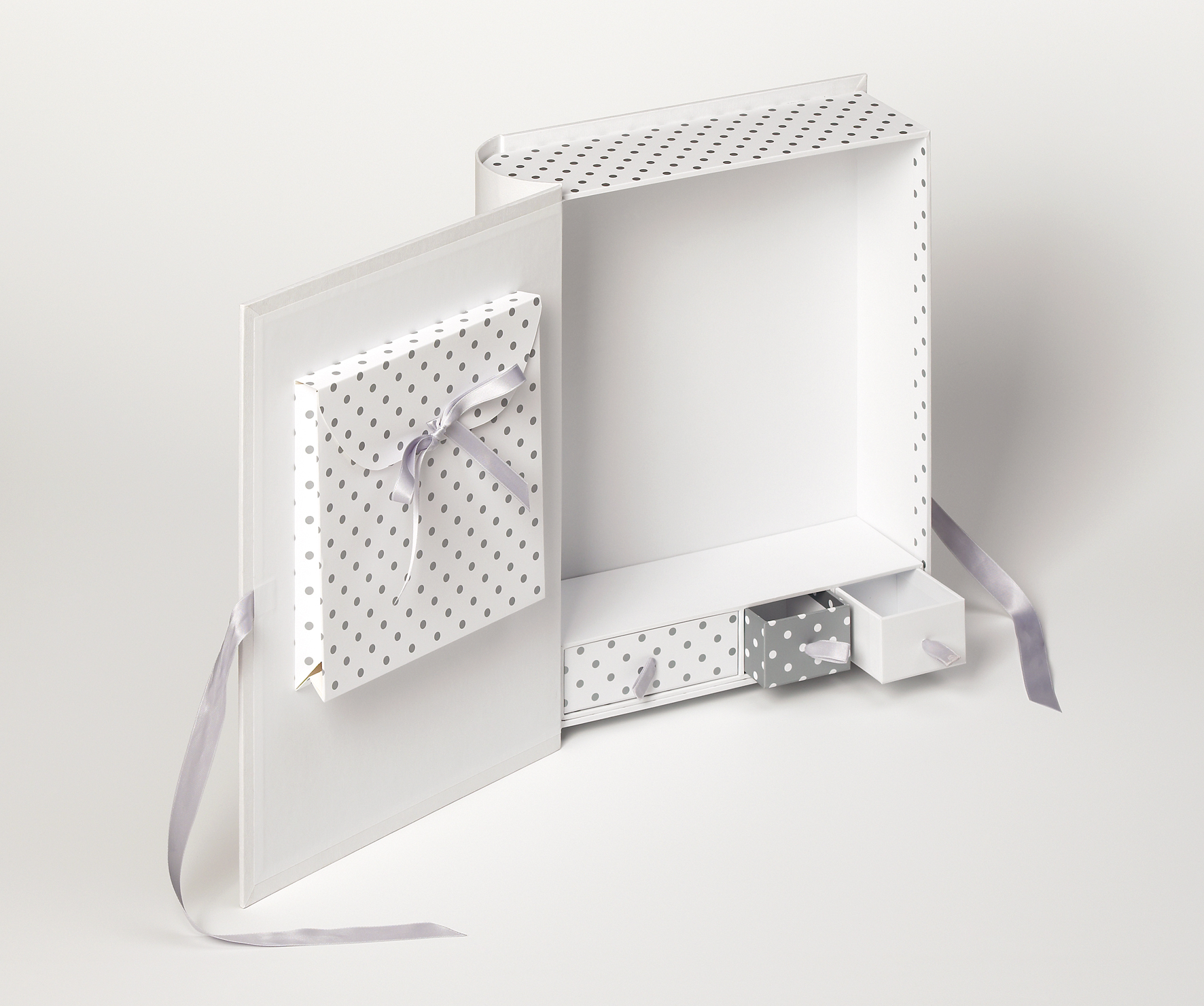 Schöne Aufbewahrungsbox für Bilder und kleine Gegenstände. Die Box enthält 3 kleinere Schubladen, die sich z. B. perfekt für den ersten Zahn eignen. Außerdem gibt es eine schließbare Aufbewahrungstasche. Auf der Vorderseite der Box ist Platz für dein eigenes Bild, um der Box eine persönliche Note zu verleihen.