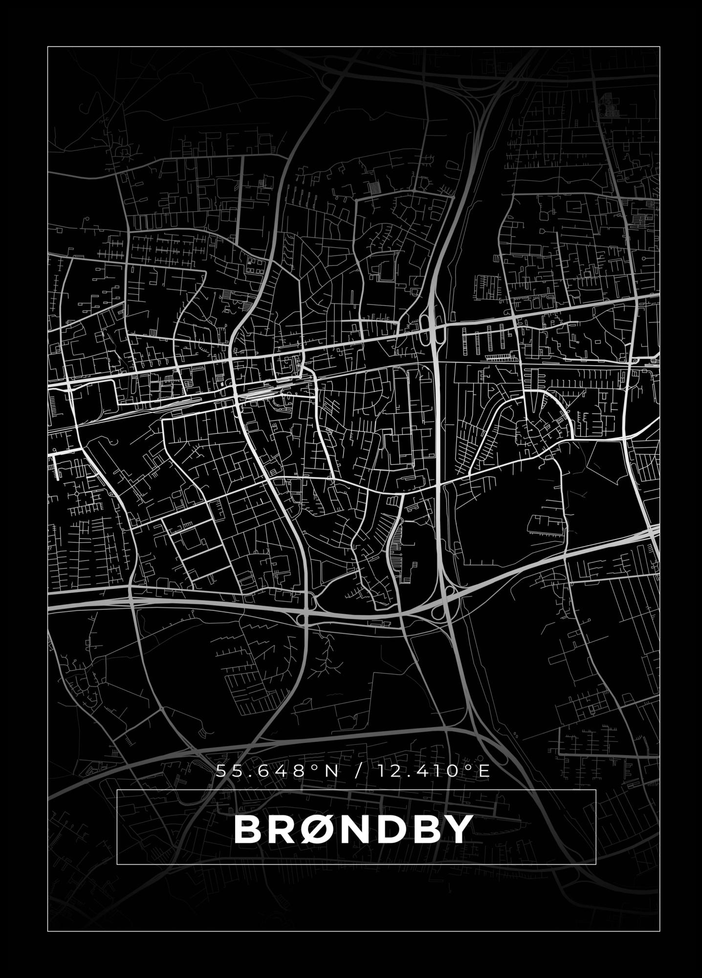 Map - Brøndby - Black (21x29.7 cm (A4))